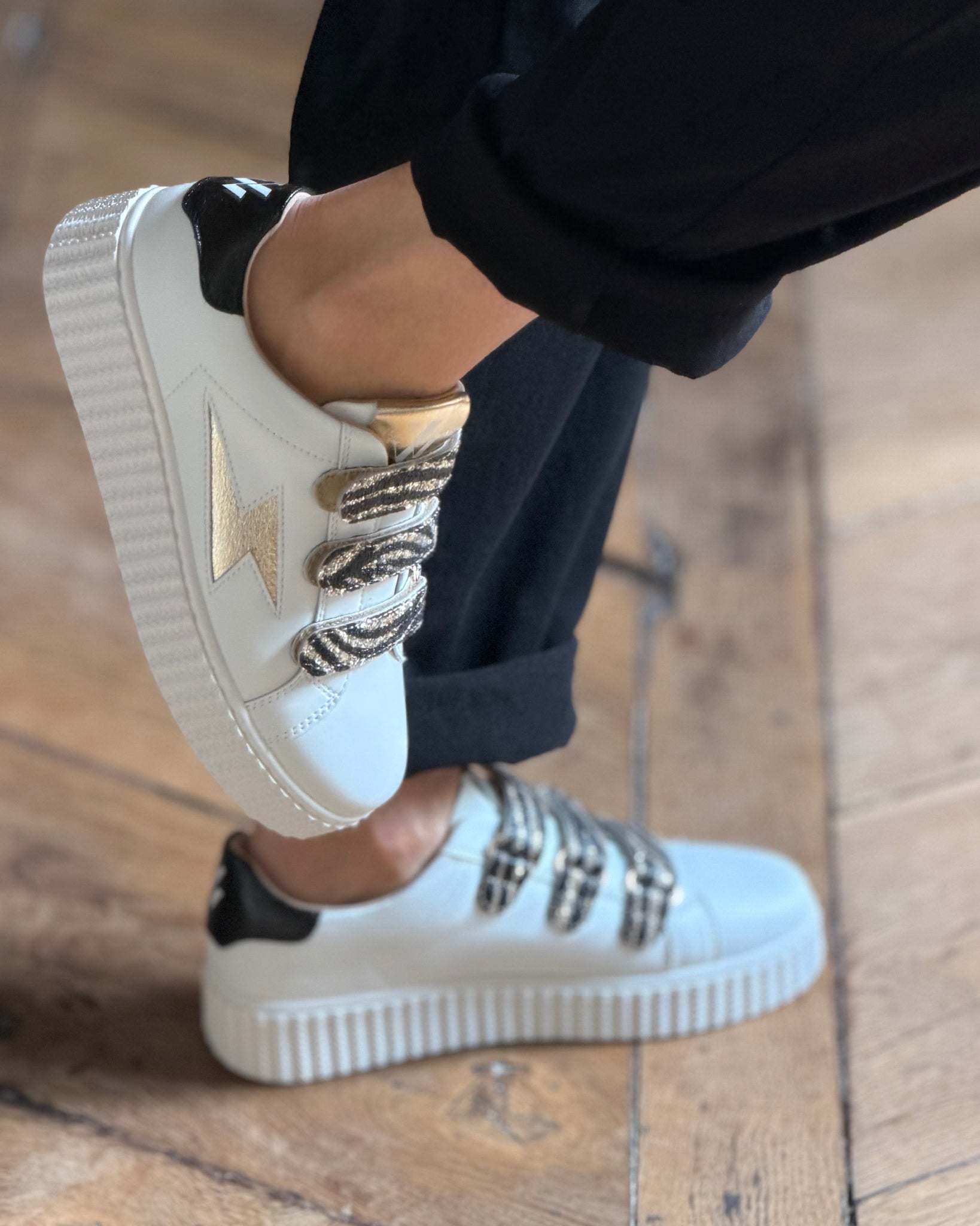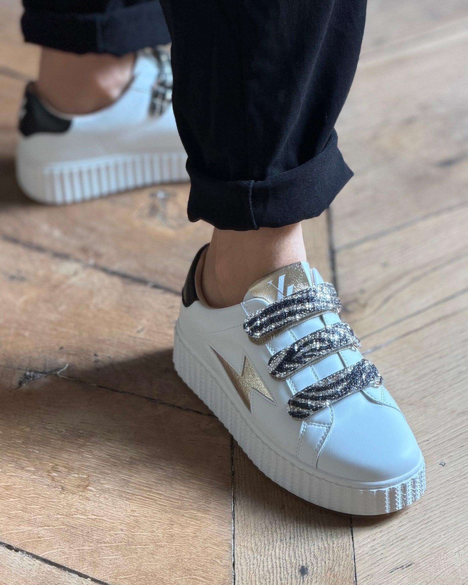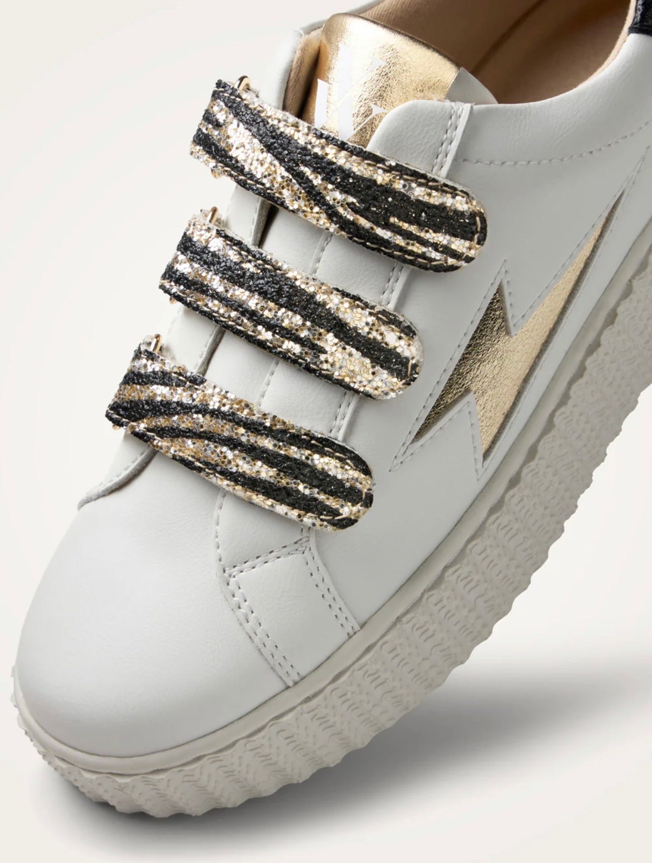 - Fermeture à scratchs pailletés or motif zèbre