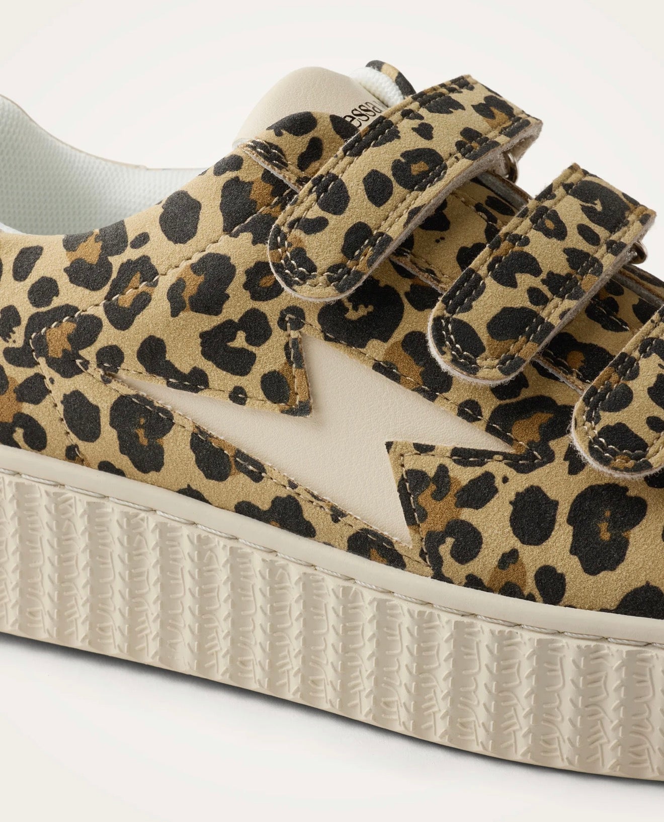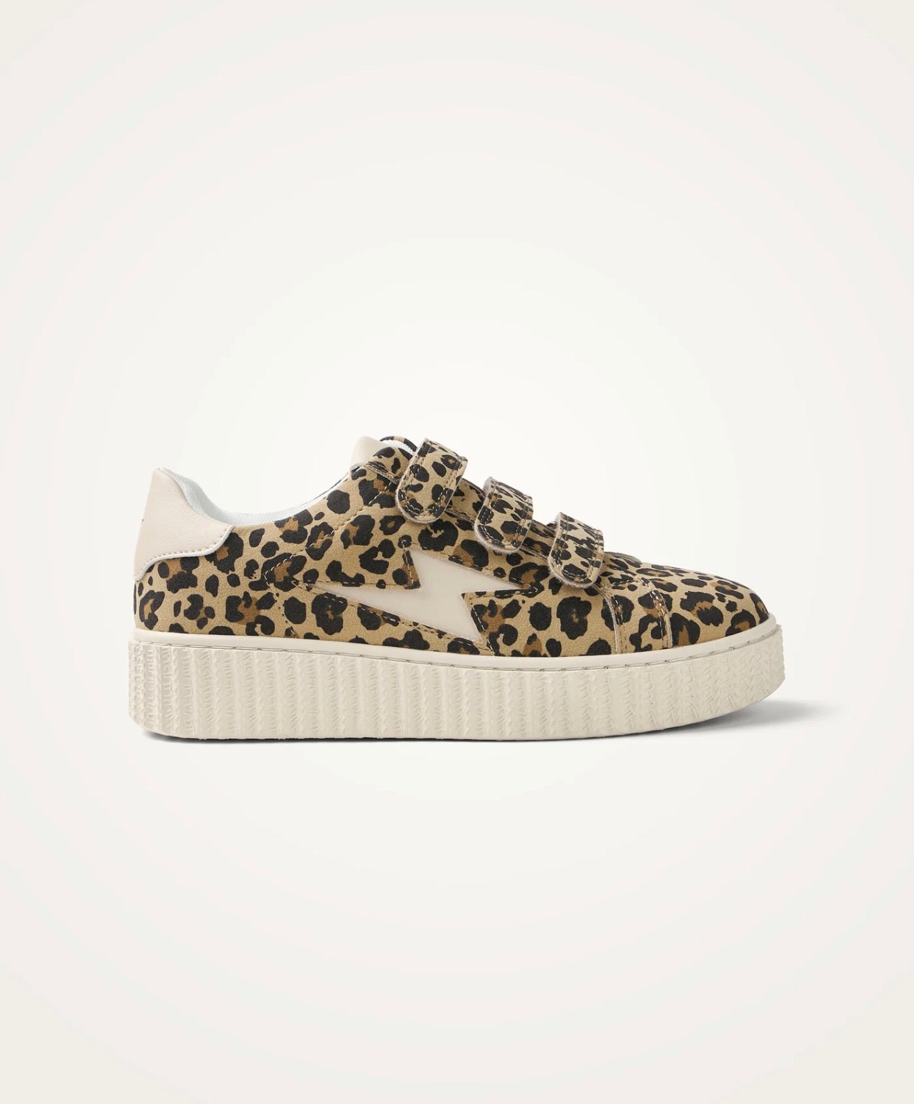 - Baskets en suédine effet peau de pêche beige imprimé léopard