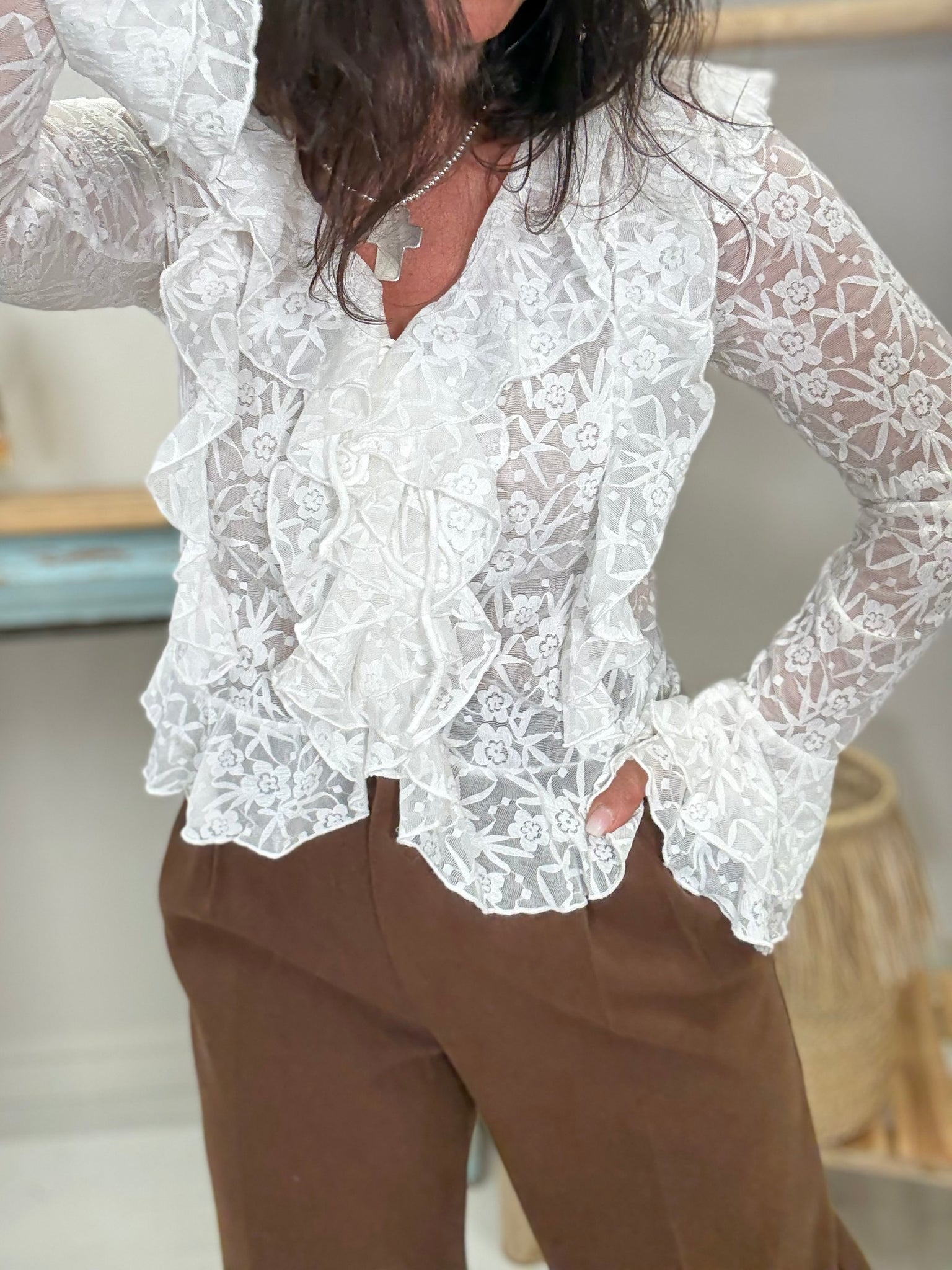 Top blanc à volants