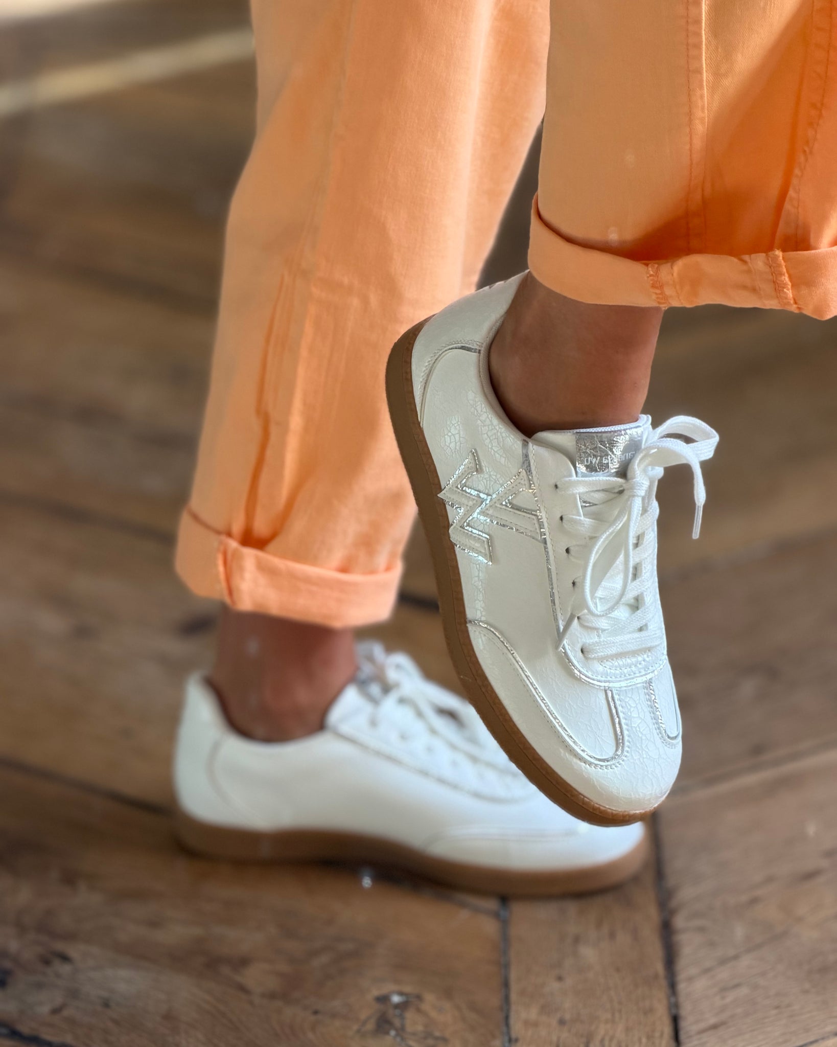 - Baskets en similicuir effet craquelé blanc