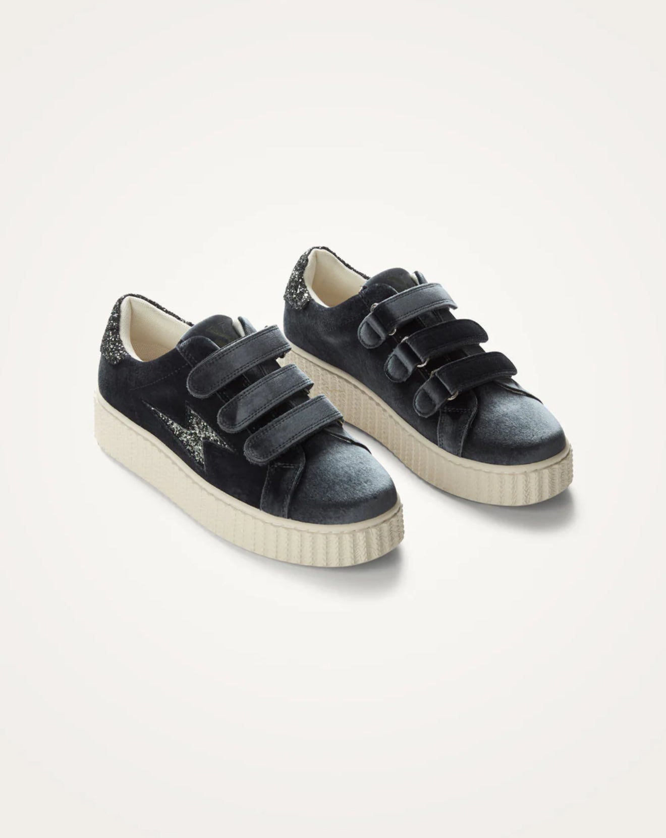 - Baskets en velours noir bleuté