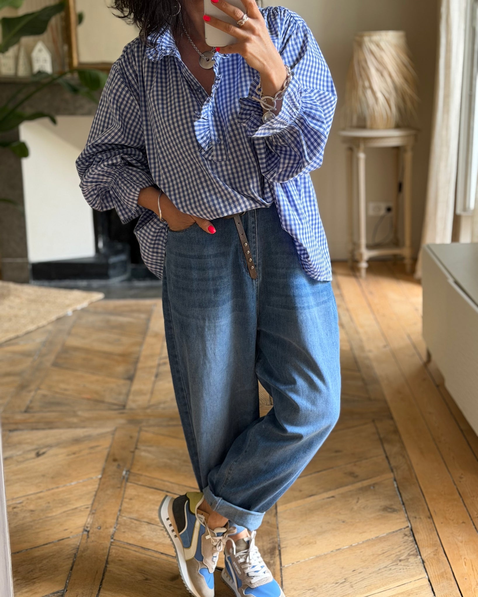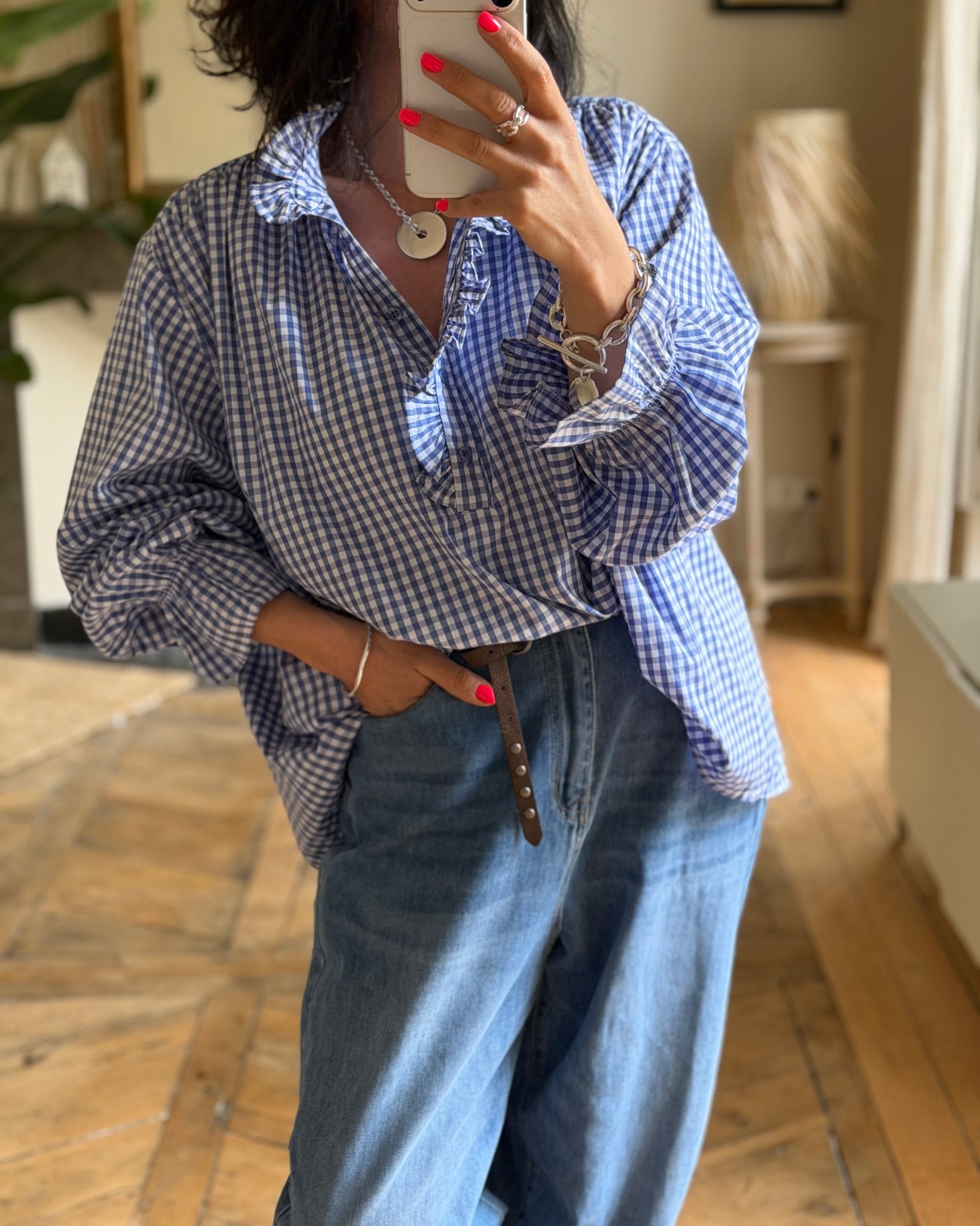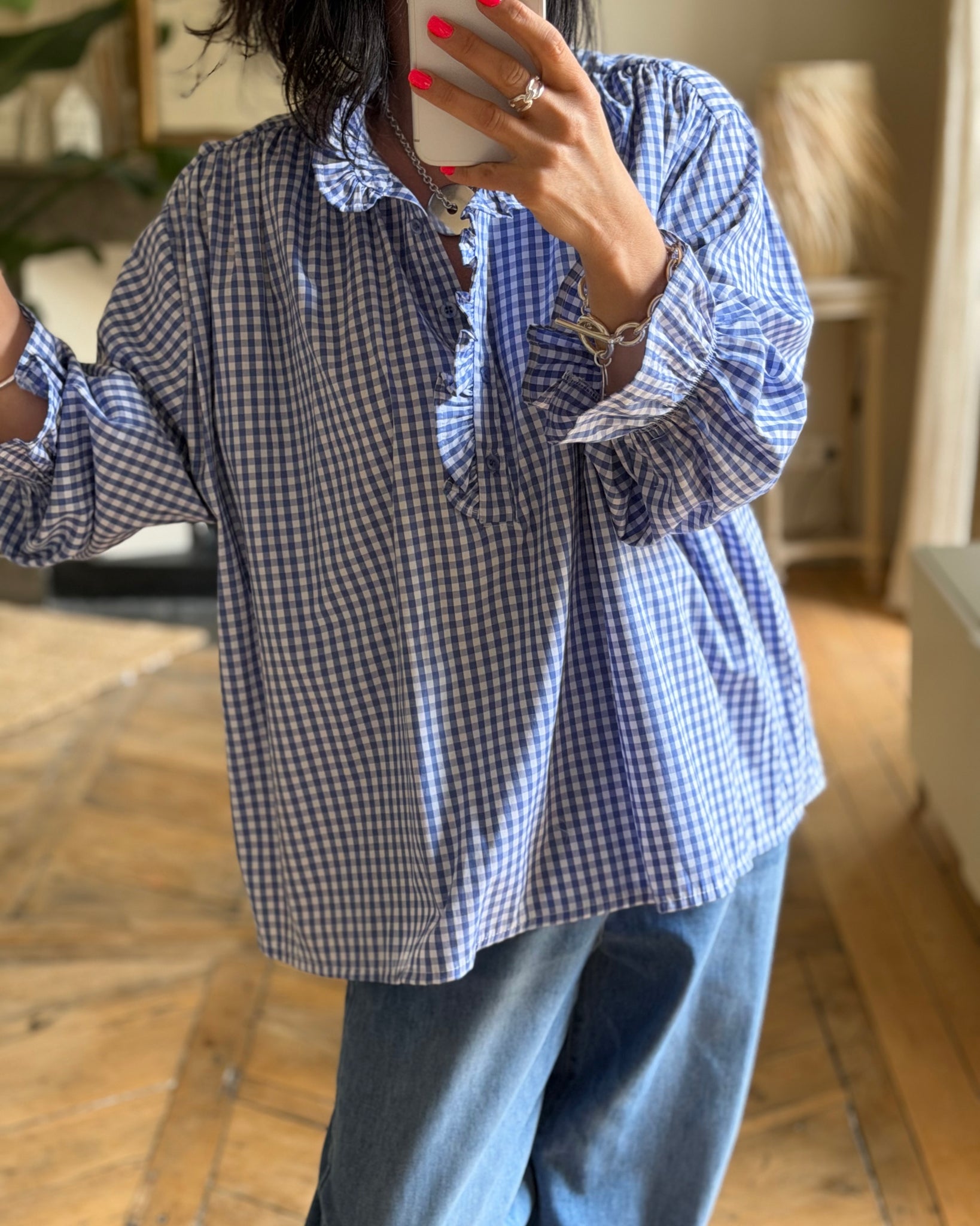 Chemise vichy ample, détails froufrous