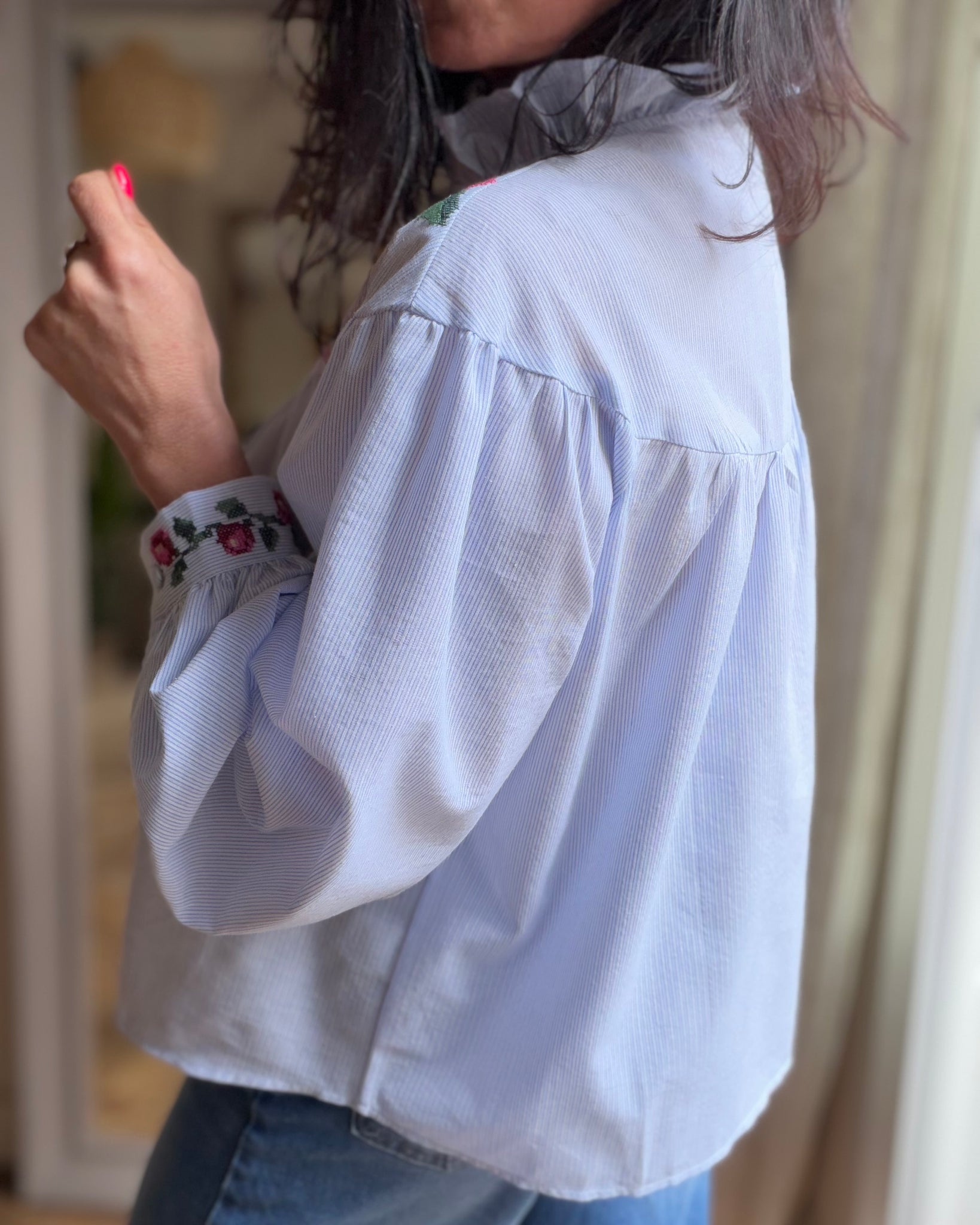 Chemise à rayures brodée