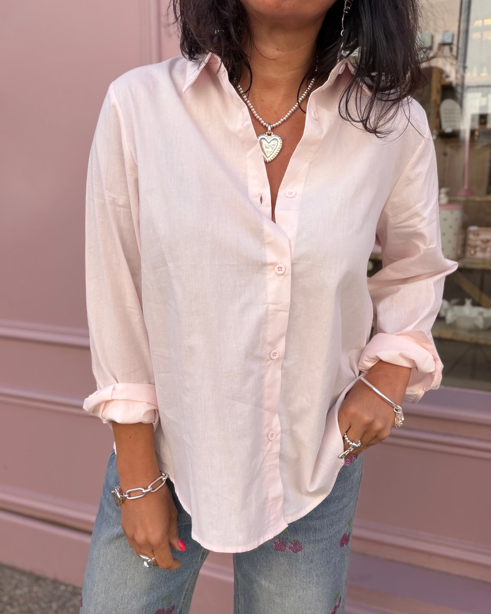 Chemise rose pâle, detail dentelle dos