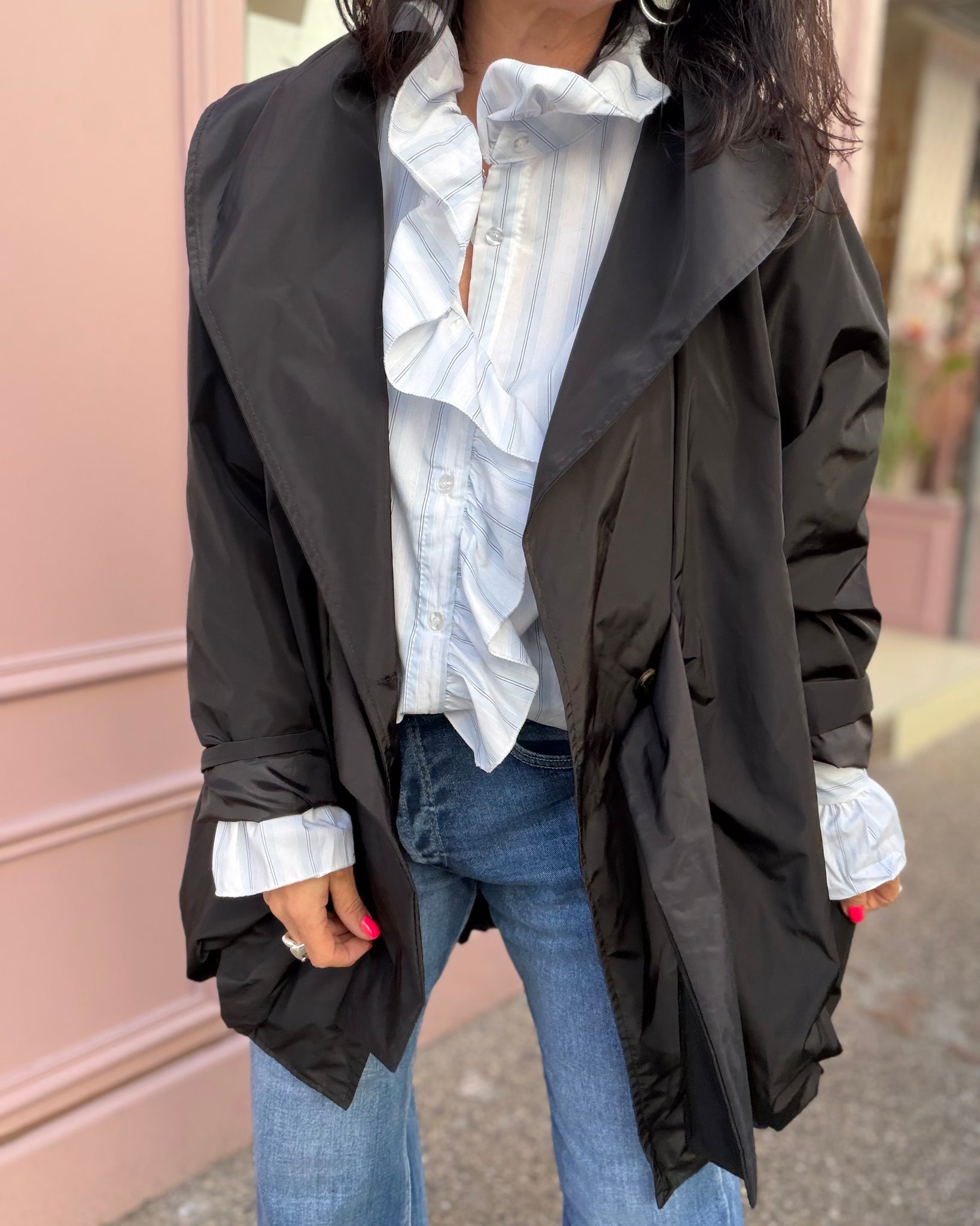 Coupe vent, fermeture bouton et lien à nouer