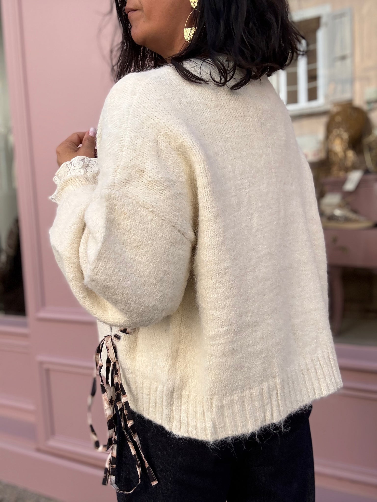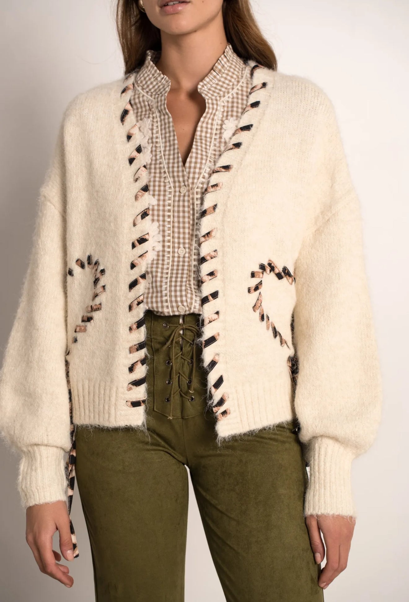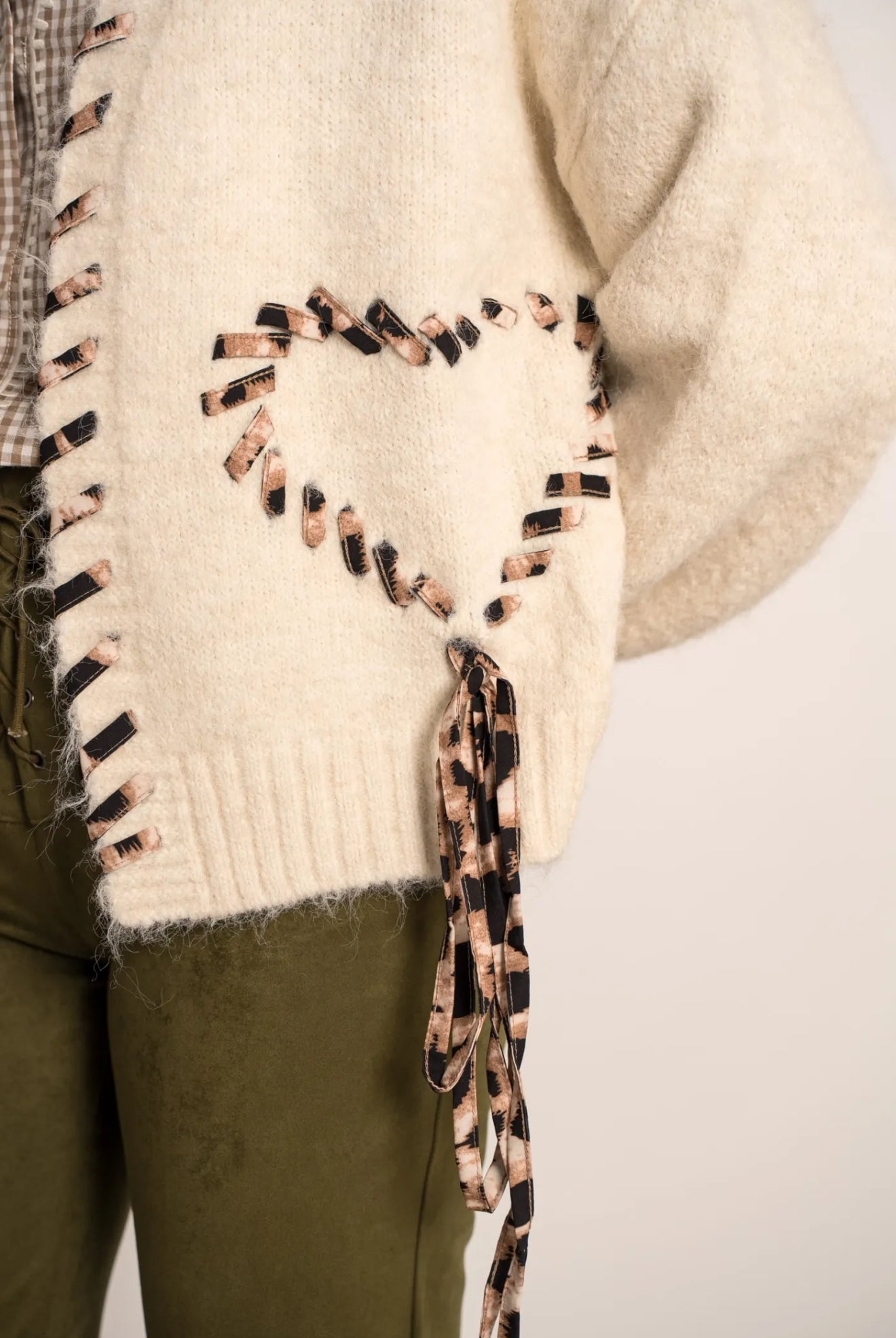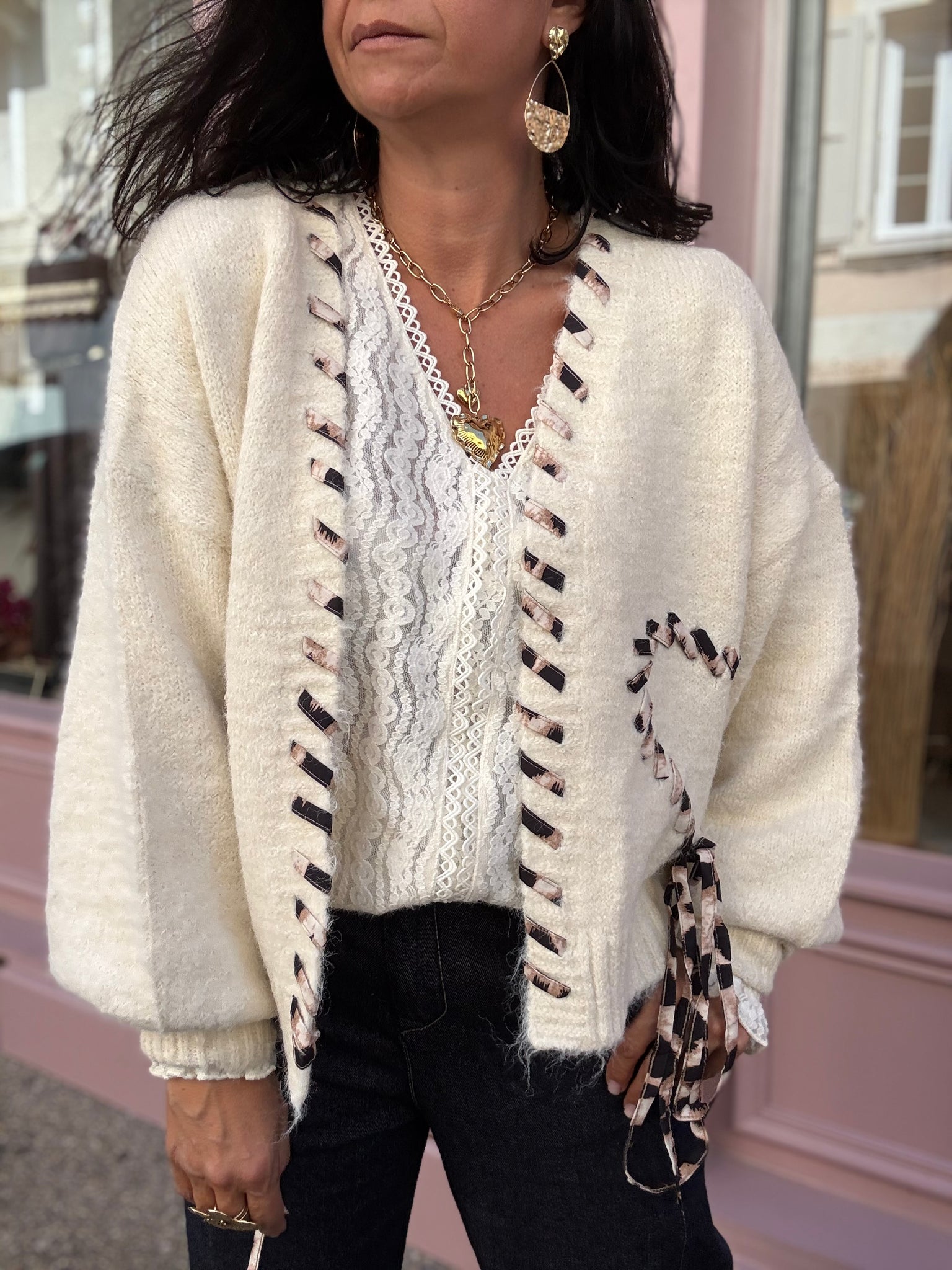 Gilet Ă©cru tout doux đ„° avec dĂ©tails en tissus lĂ©opardÂ