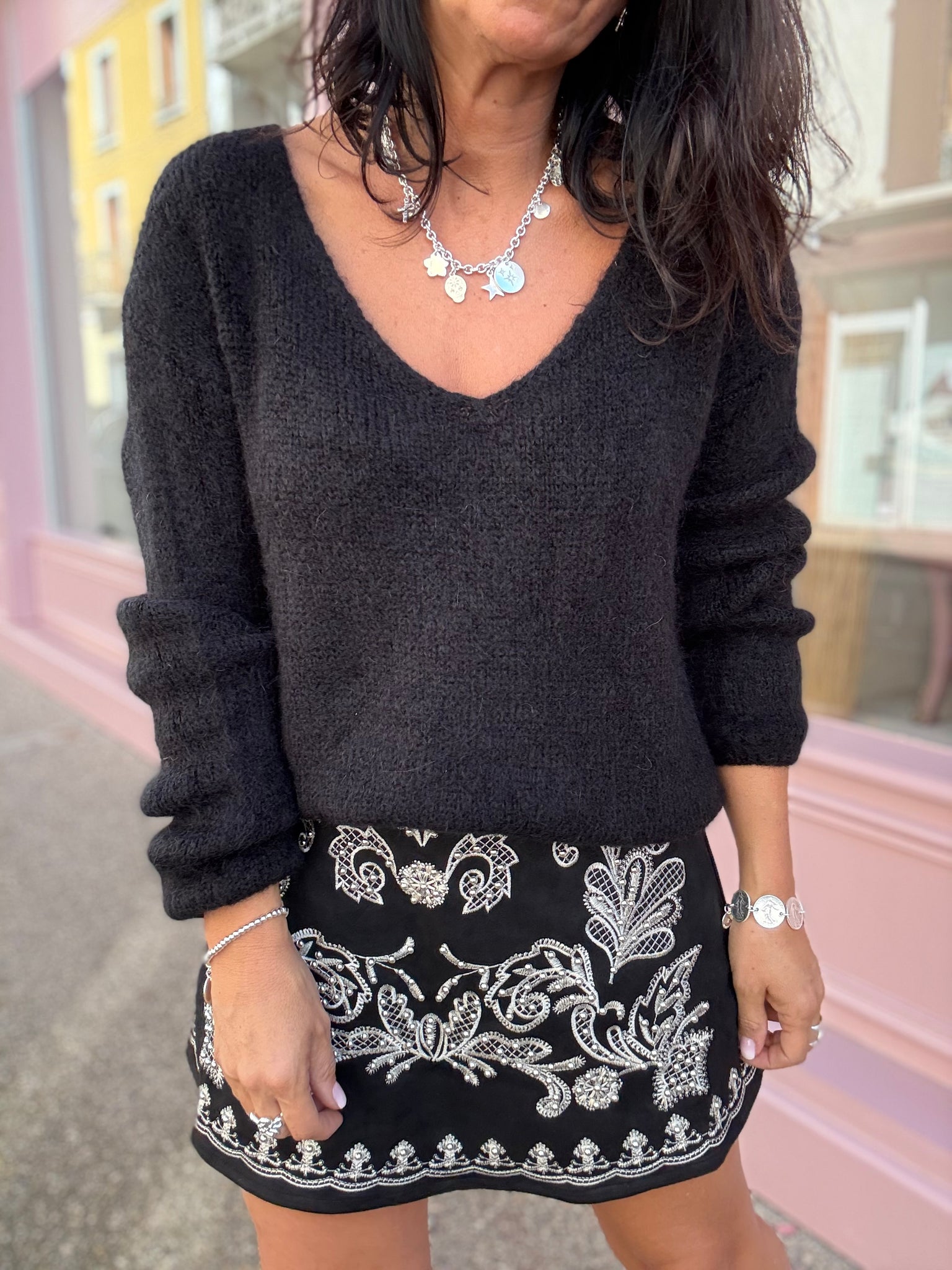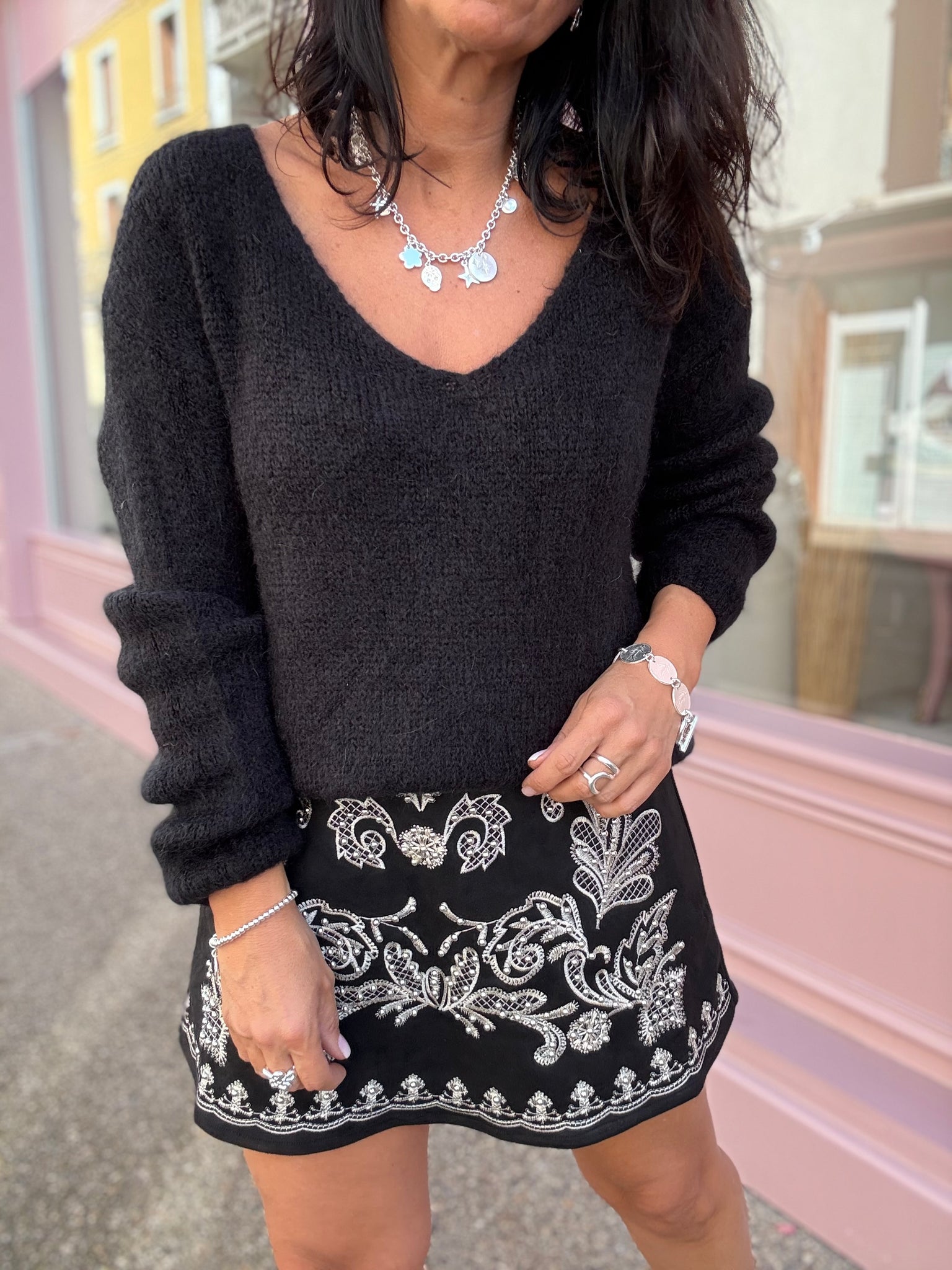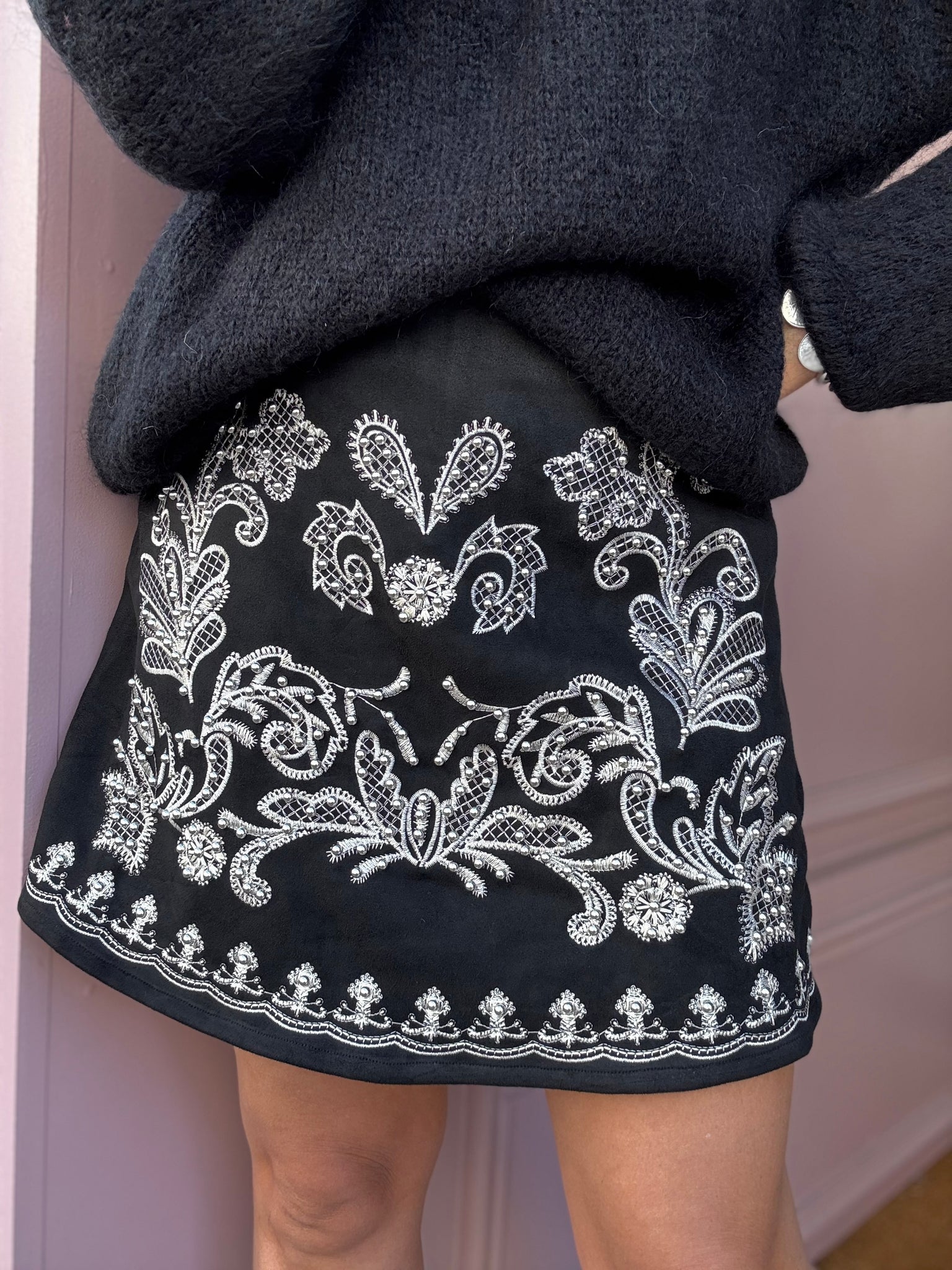 Jupe short en suédine brodée