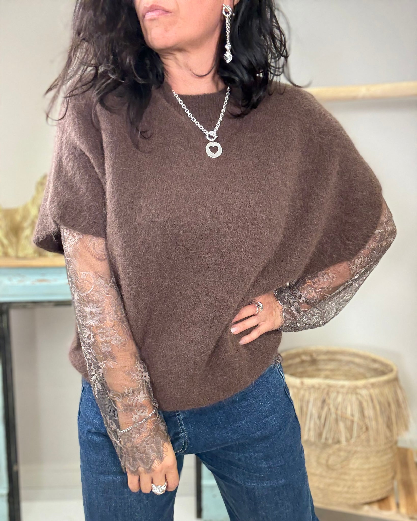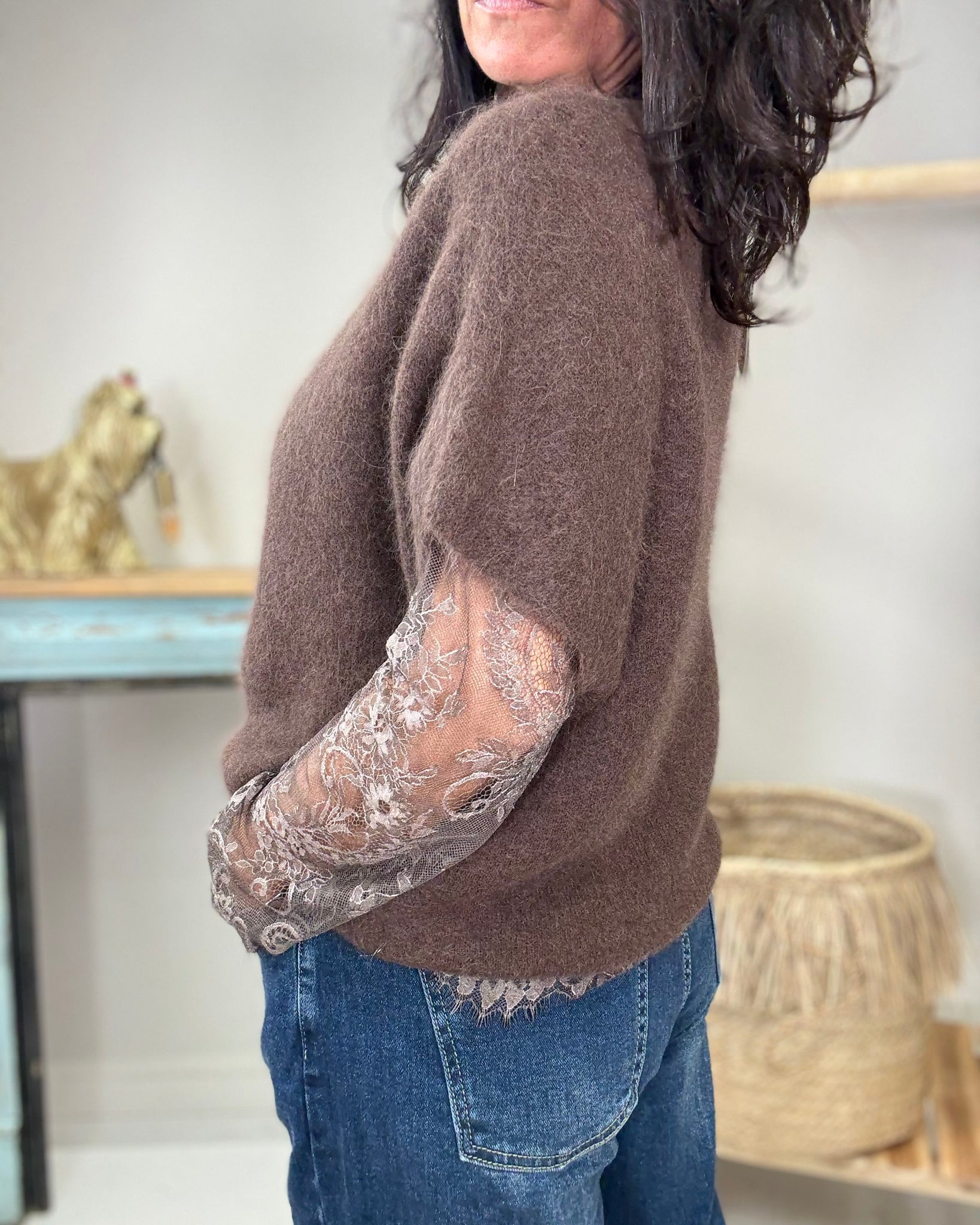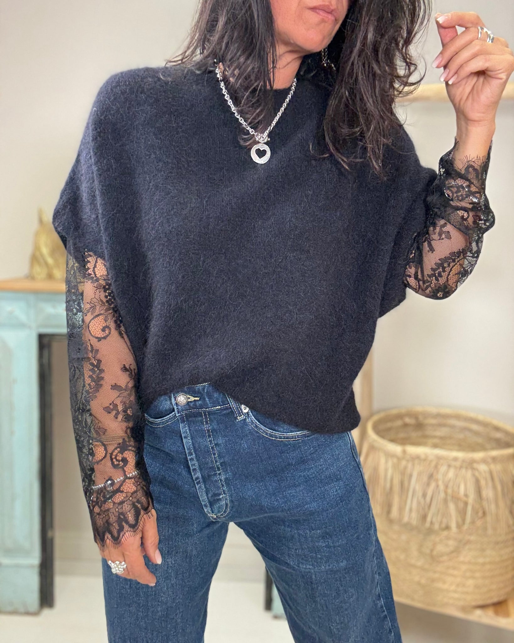Le tee-shirt dentelle portĂ© en dessous est vendu sĂ©parĂ©mentÂ