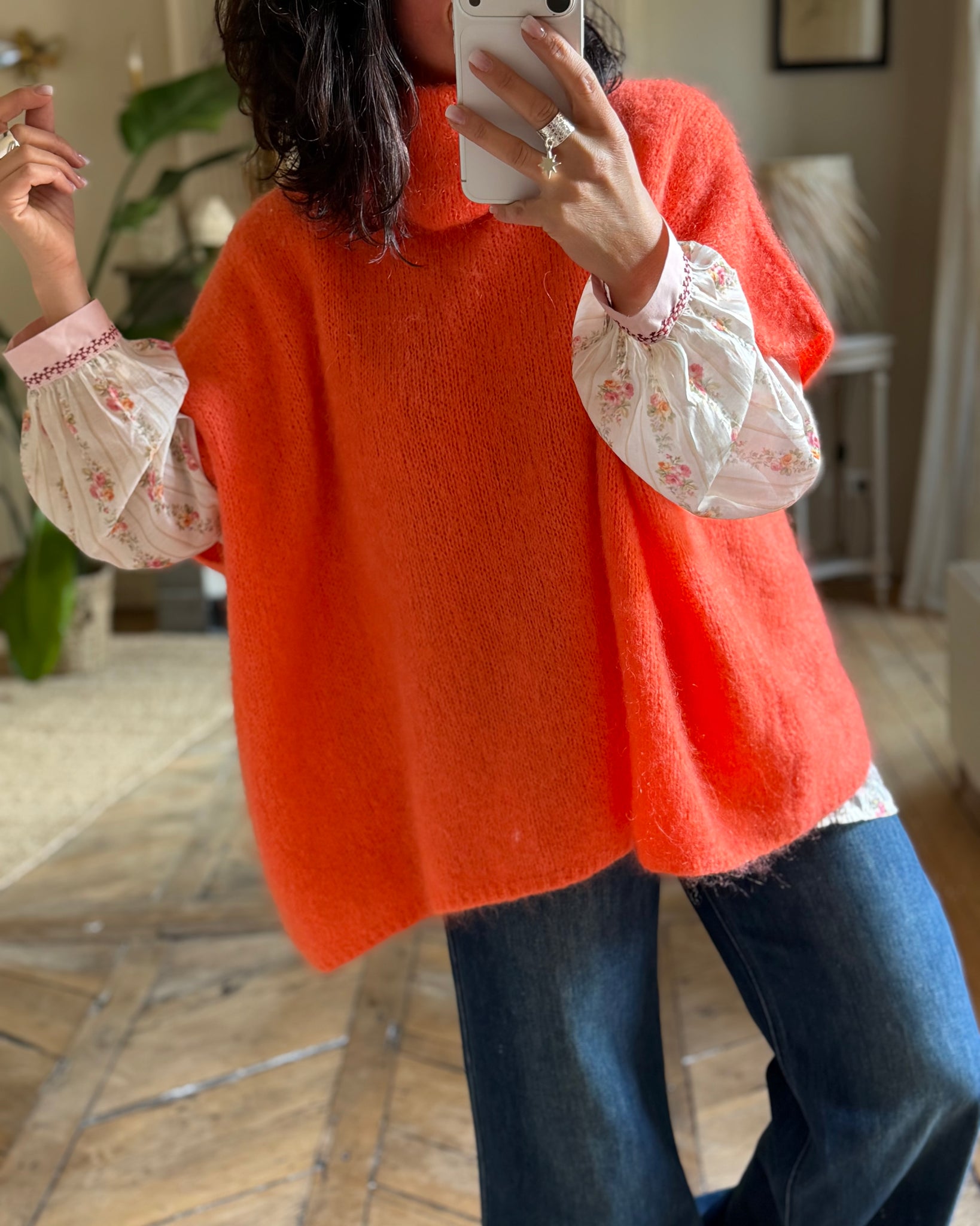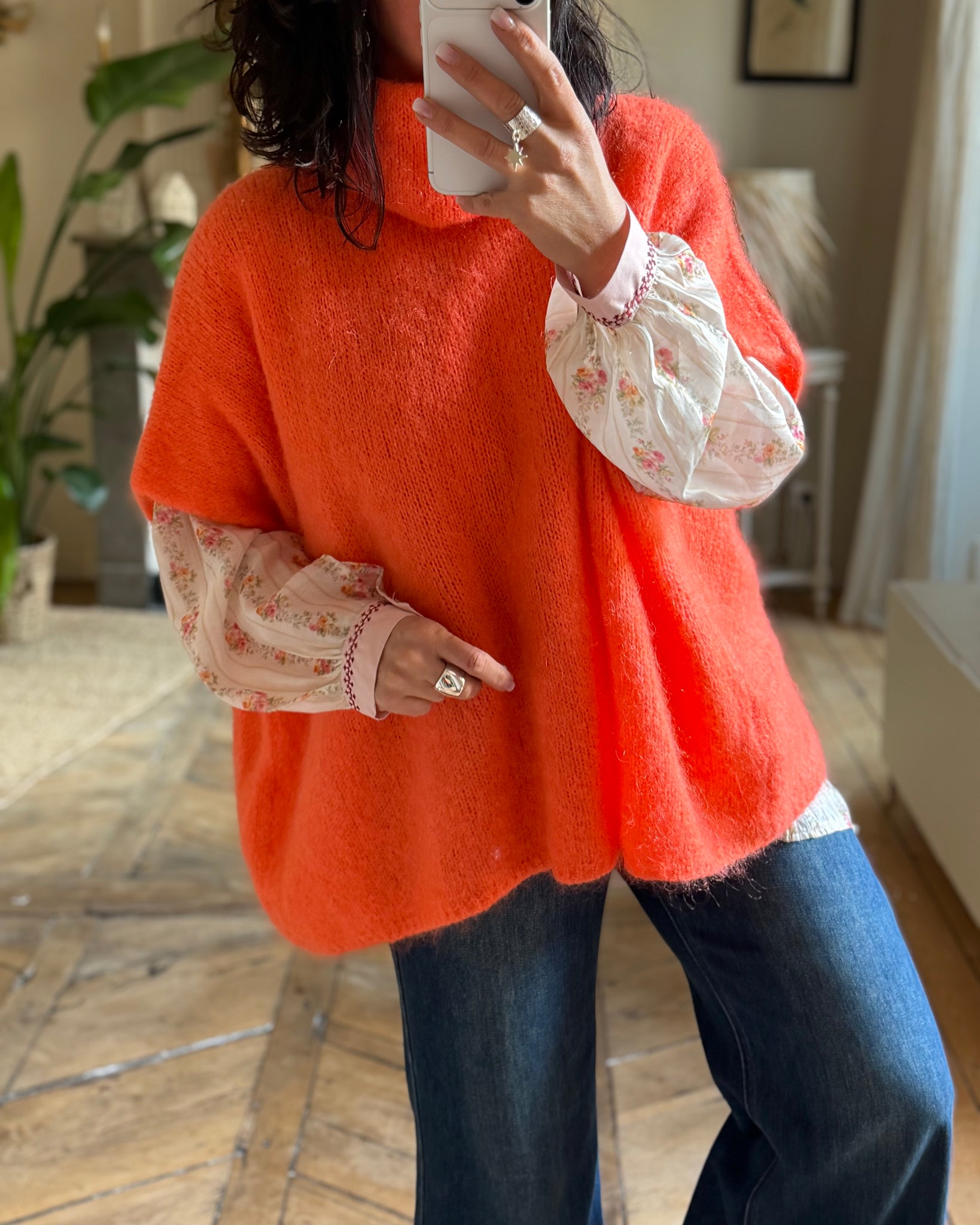 Pull large, col roulé, sans manches