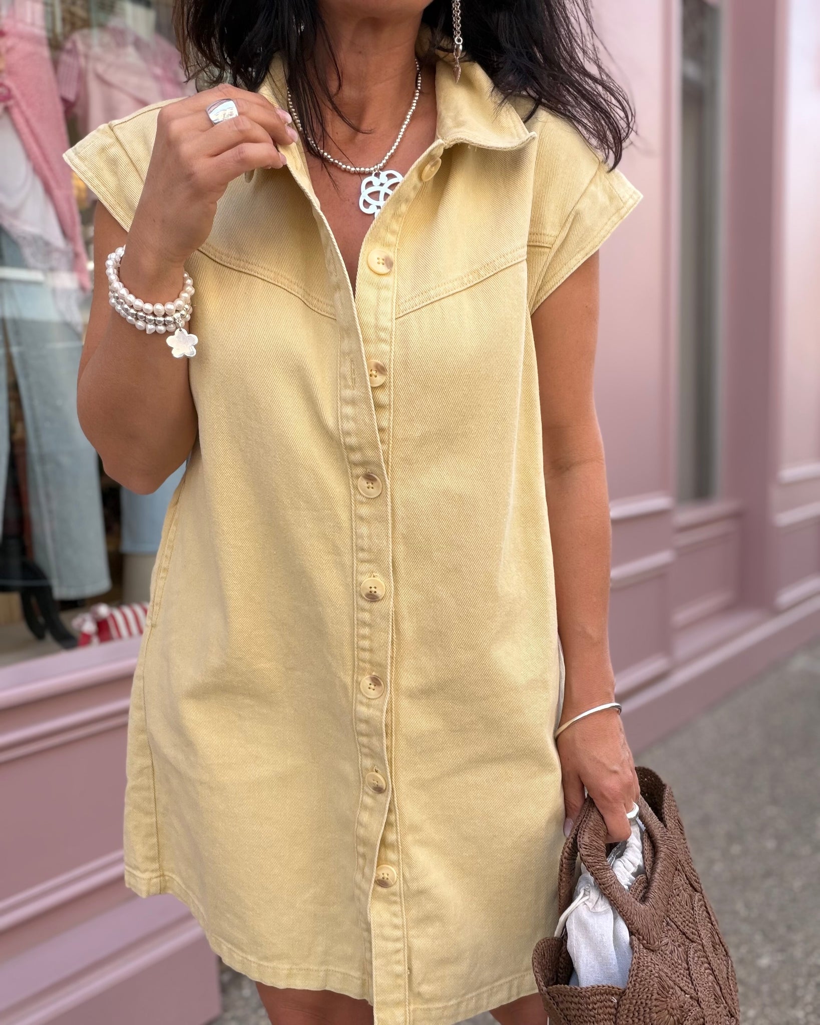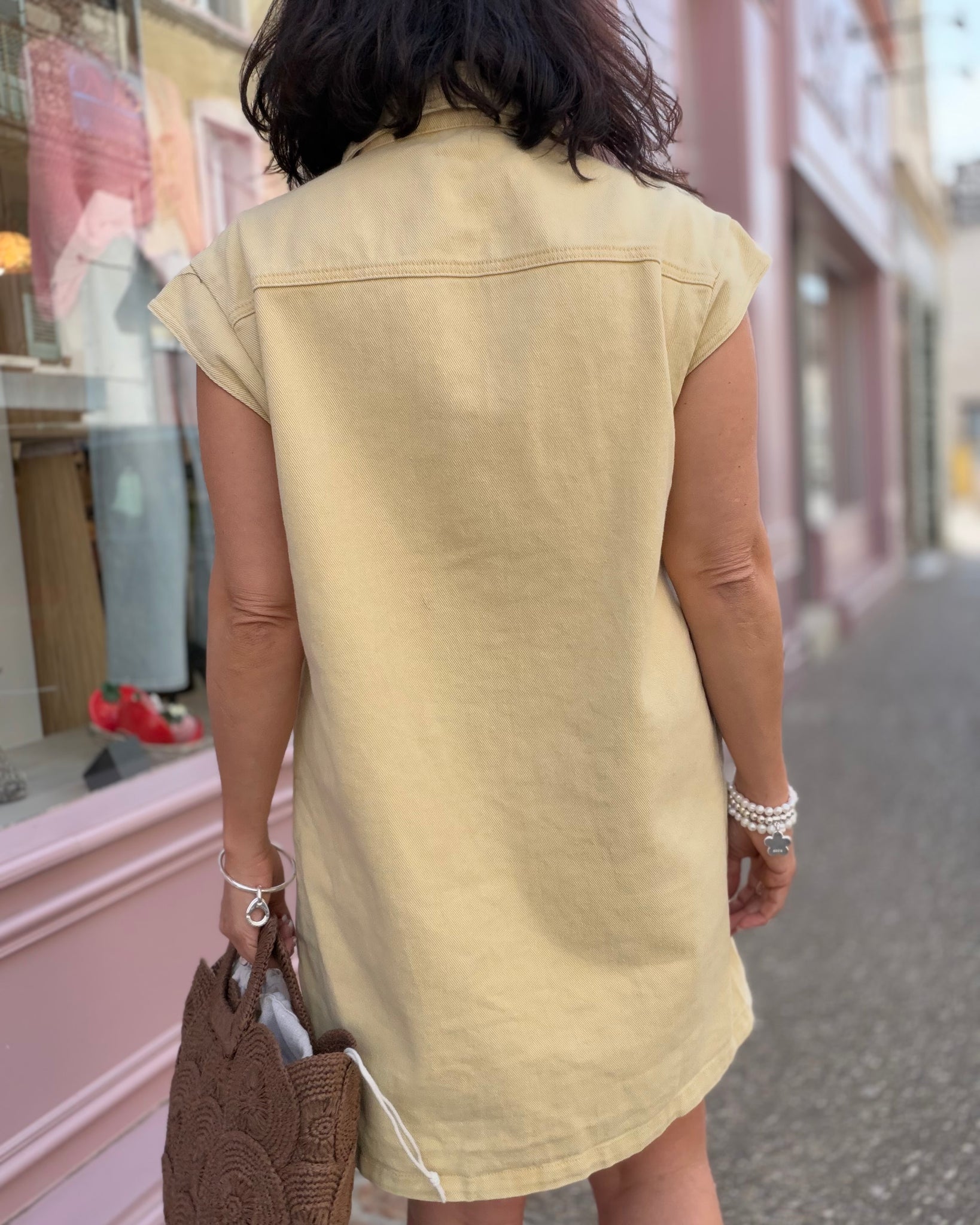 Robe en jean jaune délavé, deux poches
