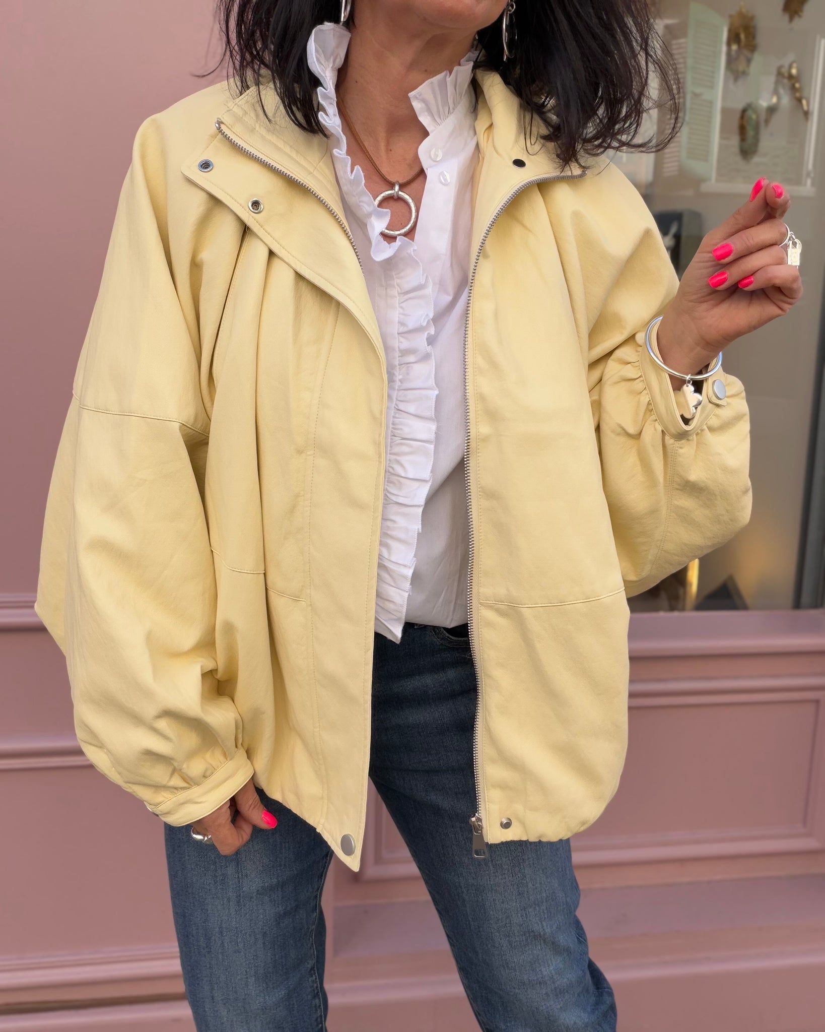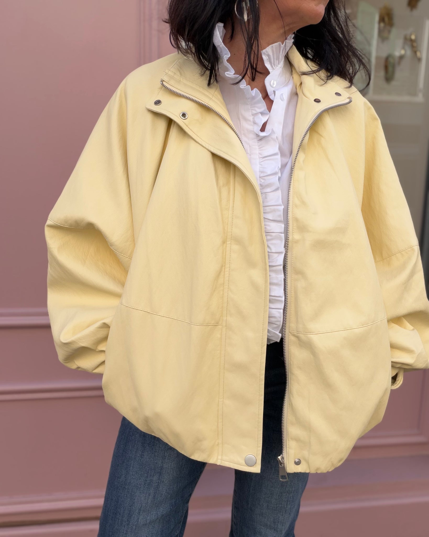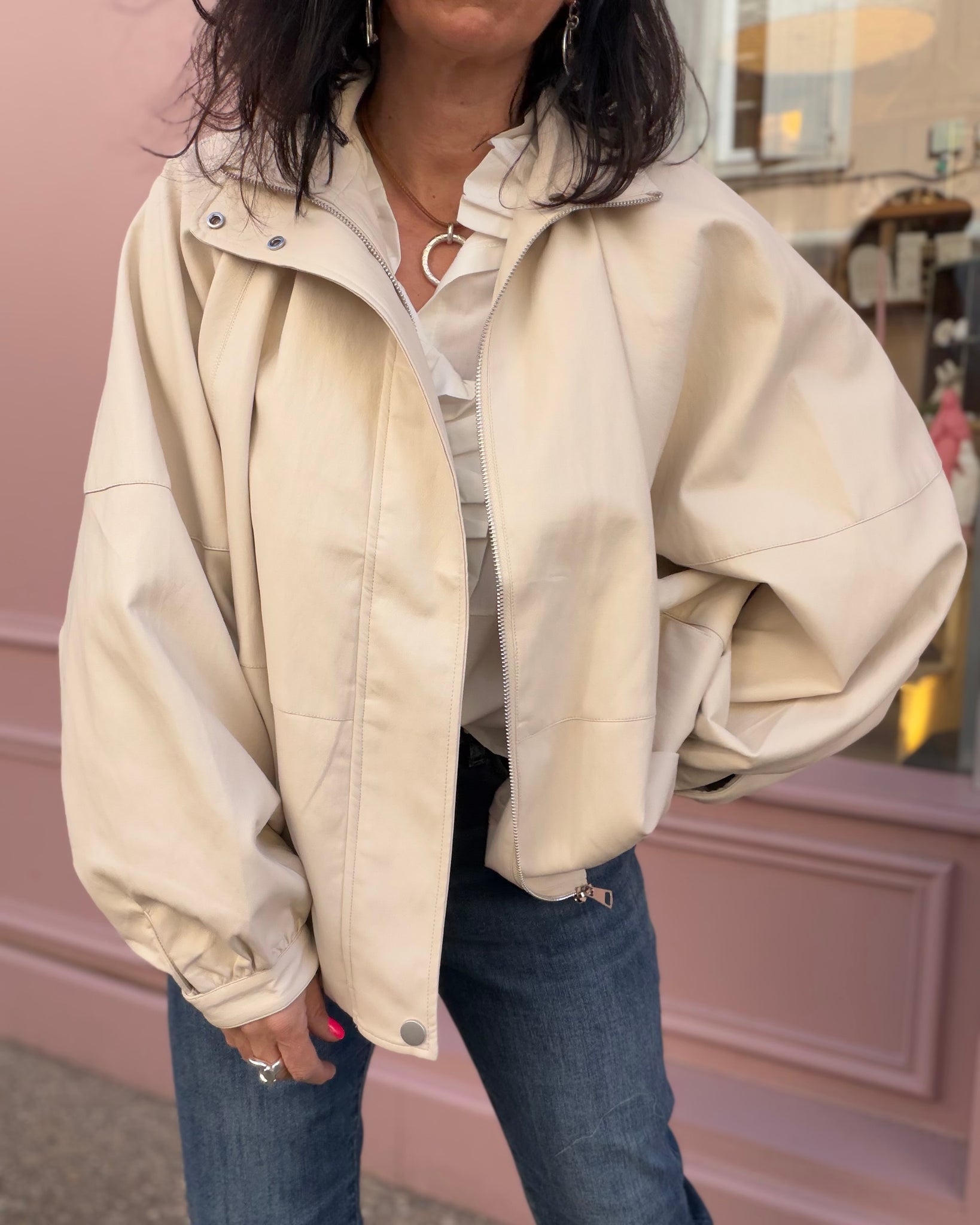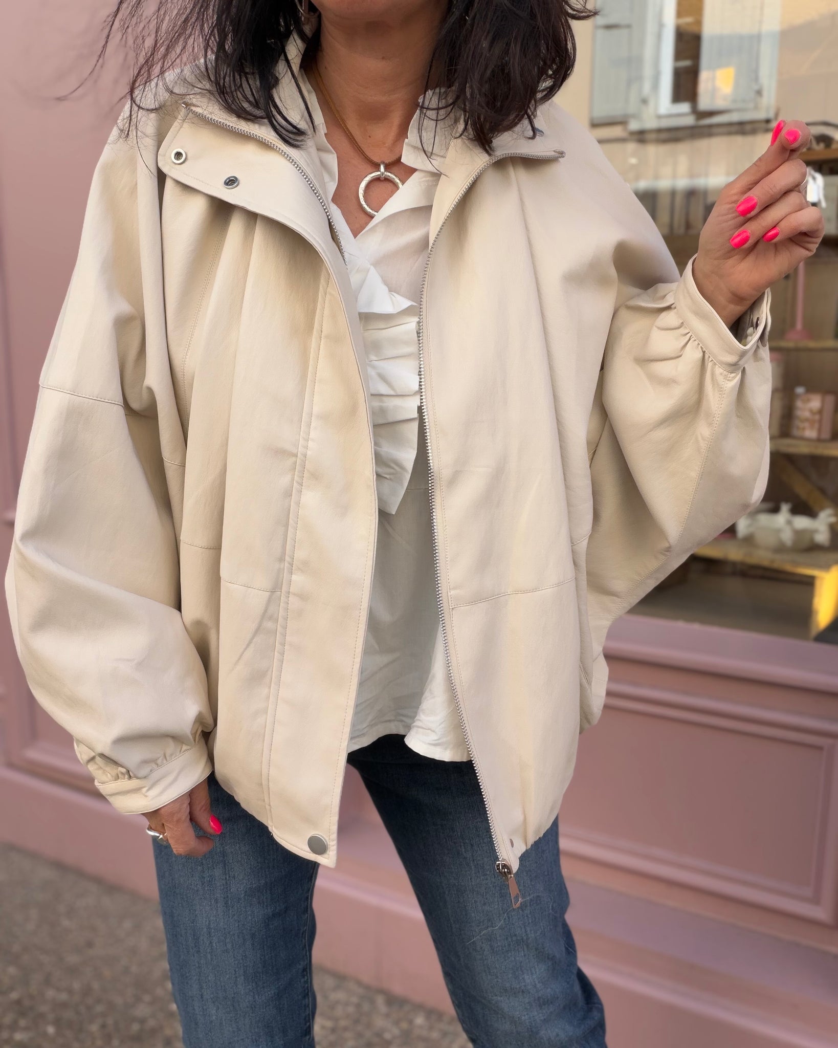 Veste souple en similicuir, coupe chauves souris, intérieur doublé, poches