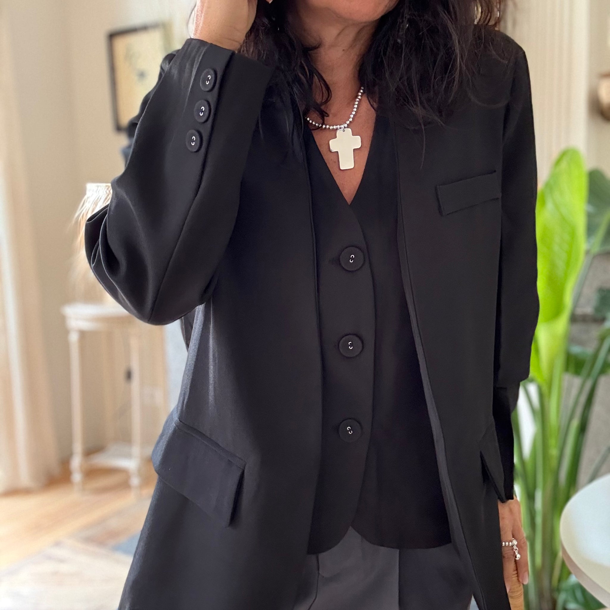 Veste 2 en 1, intérieur doublé, deux poches, coupe large