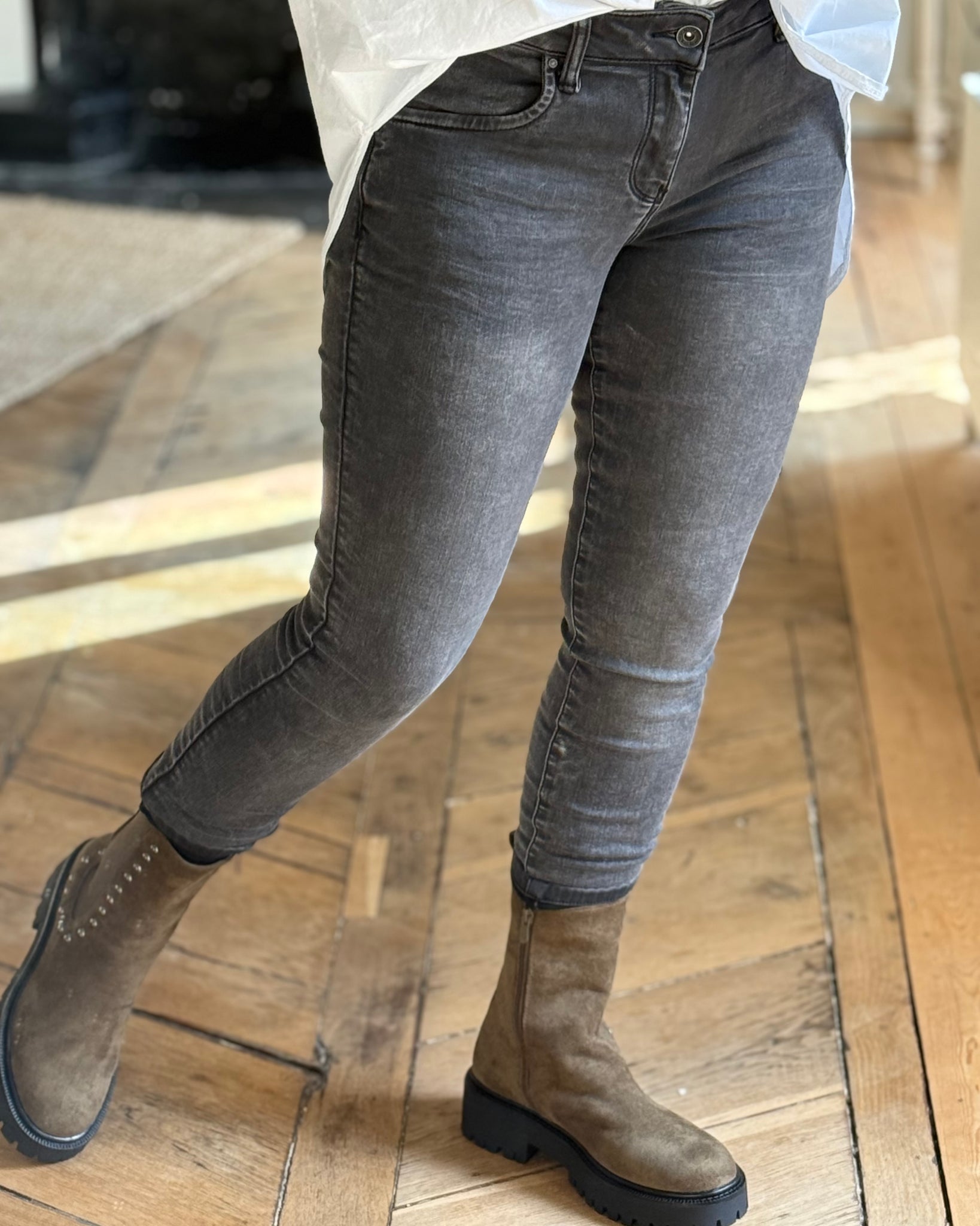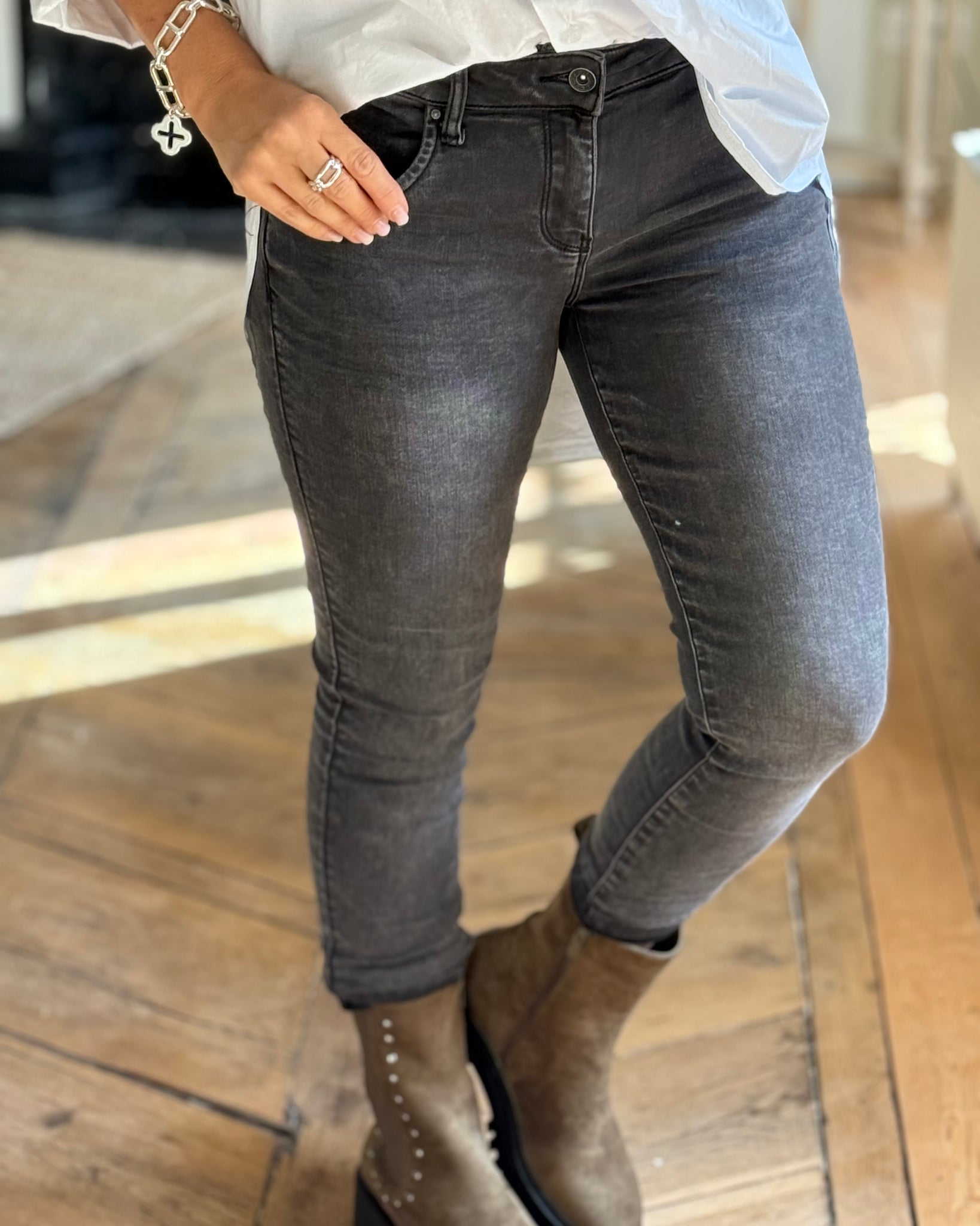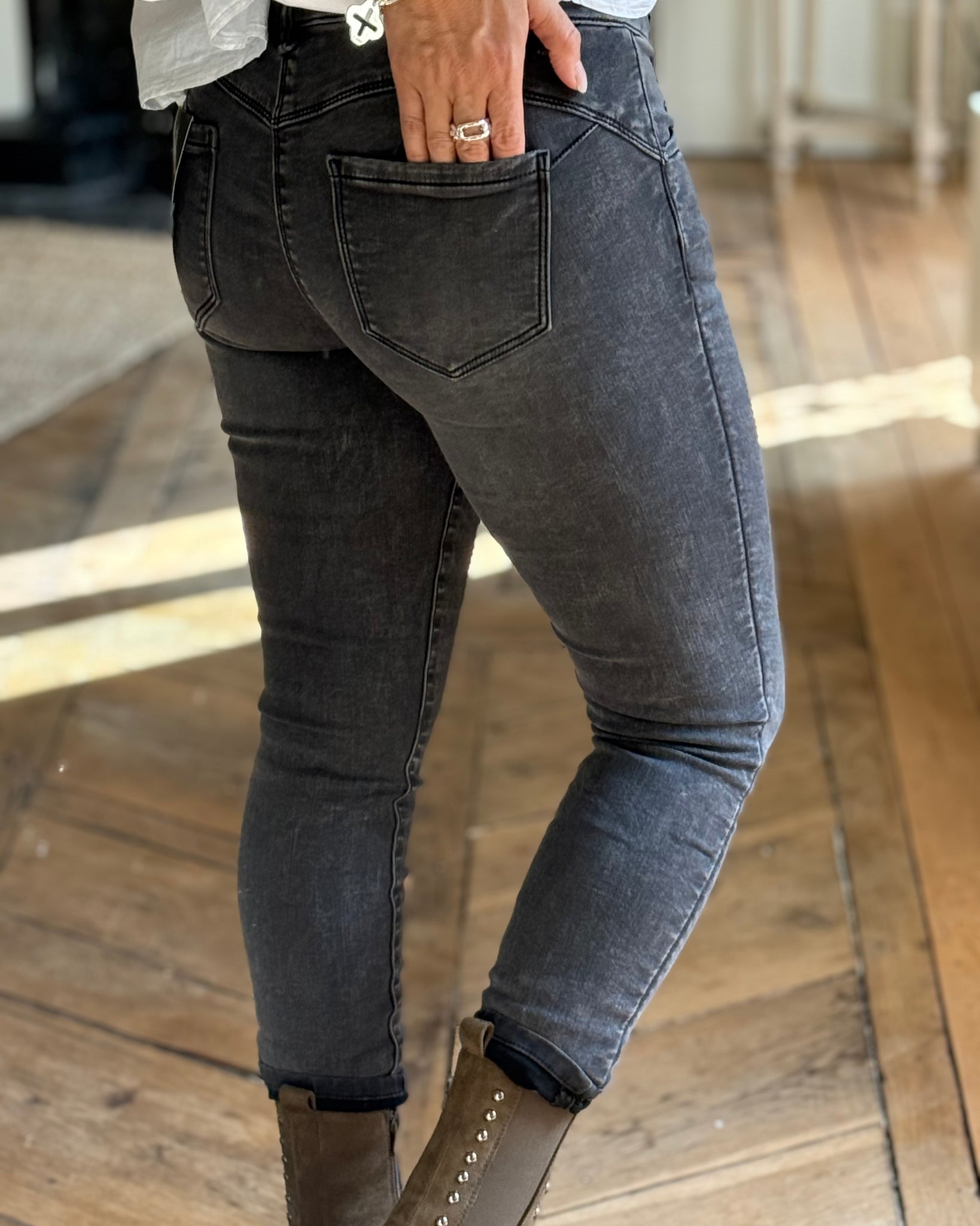 Jean gris, coupe slim, effet push up, taille légèrement basse