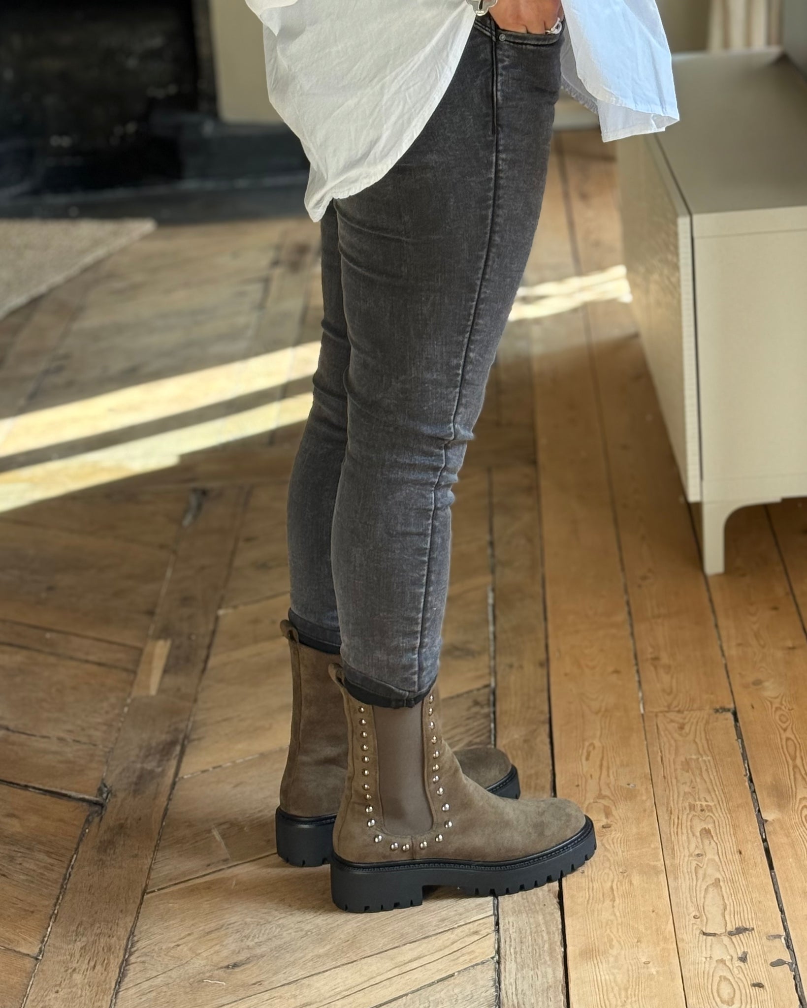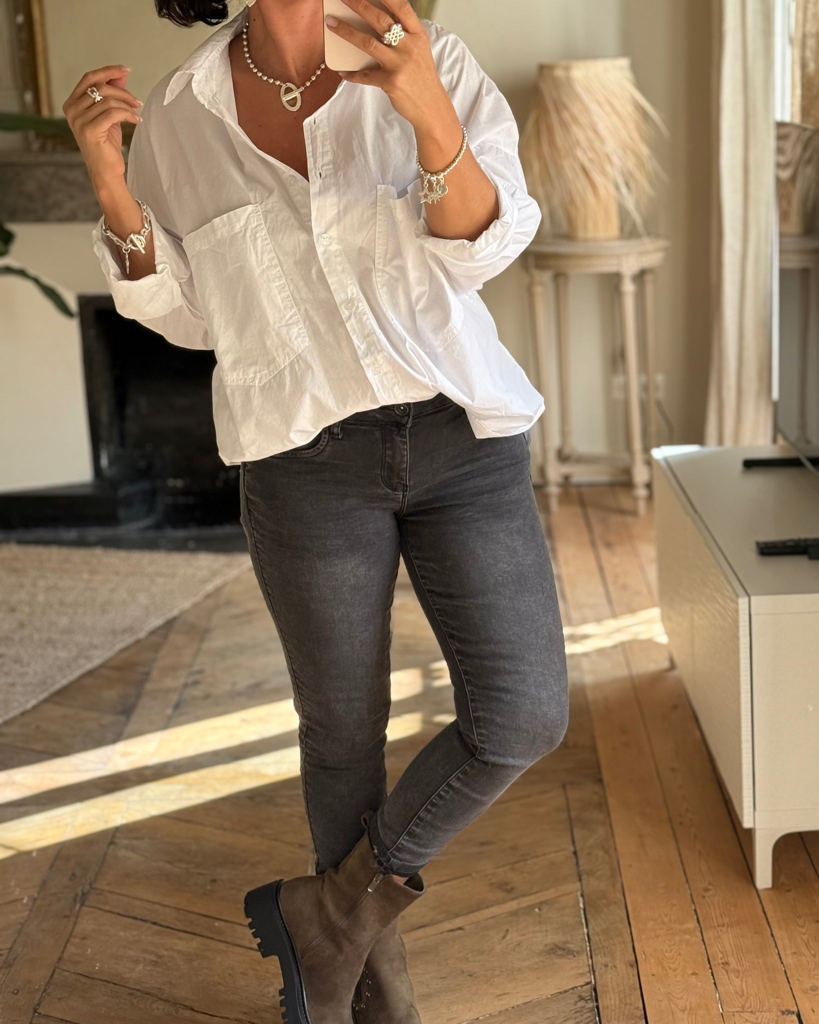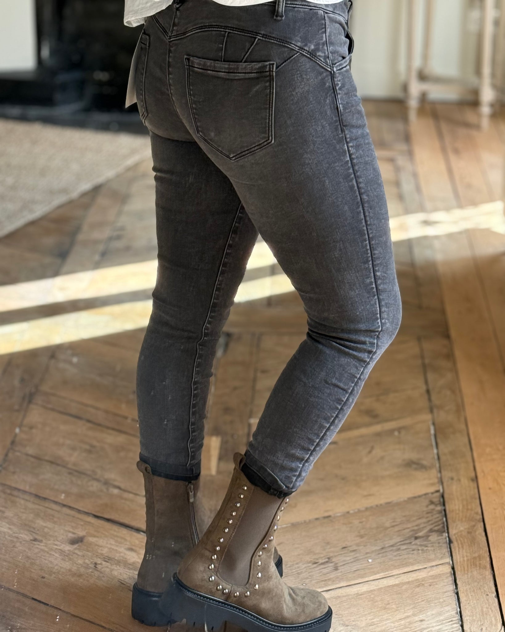 Jean gris, coupe slim, effet push up, taille légèrement basse