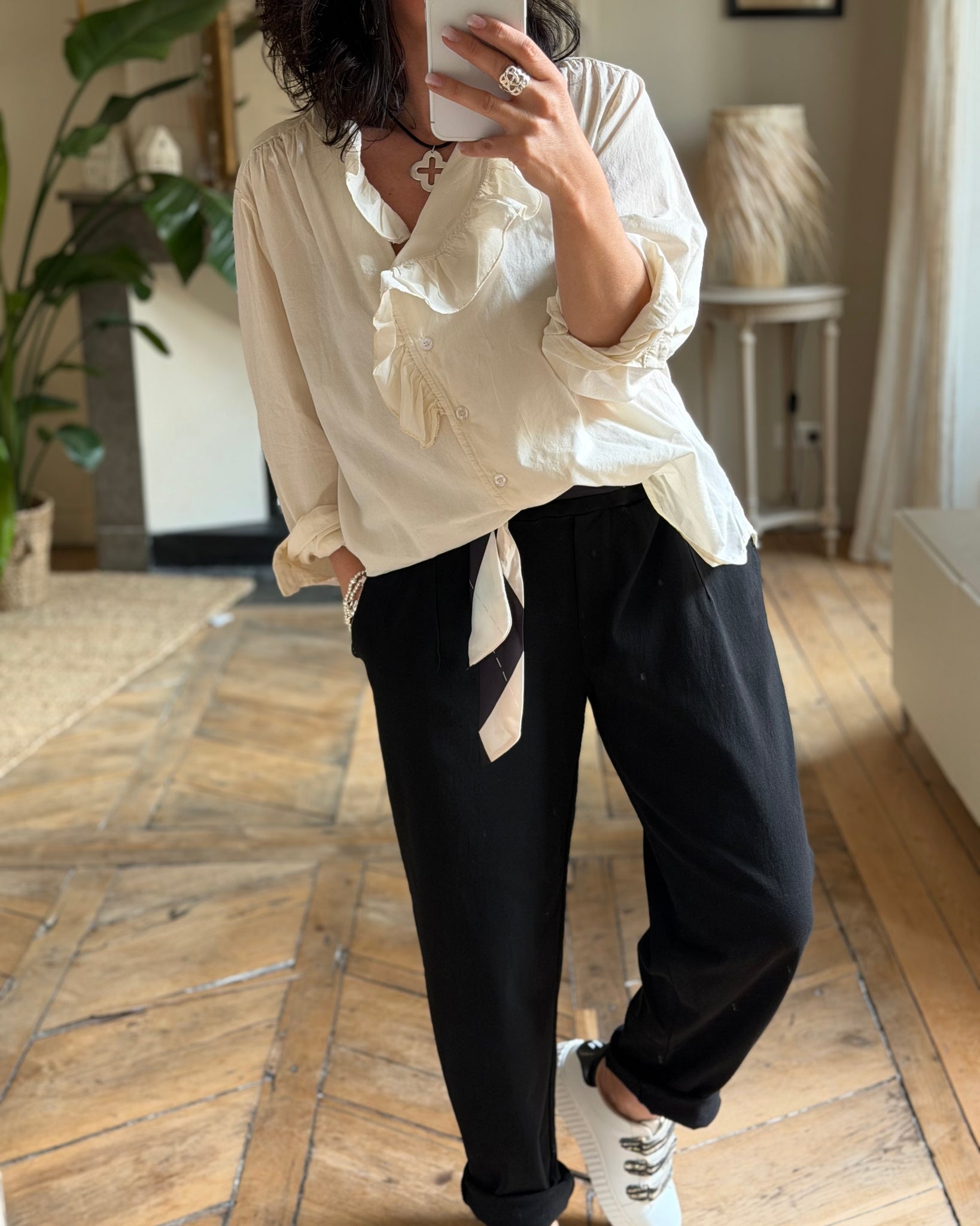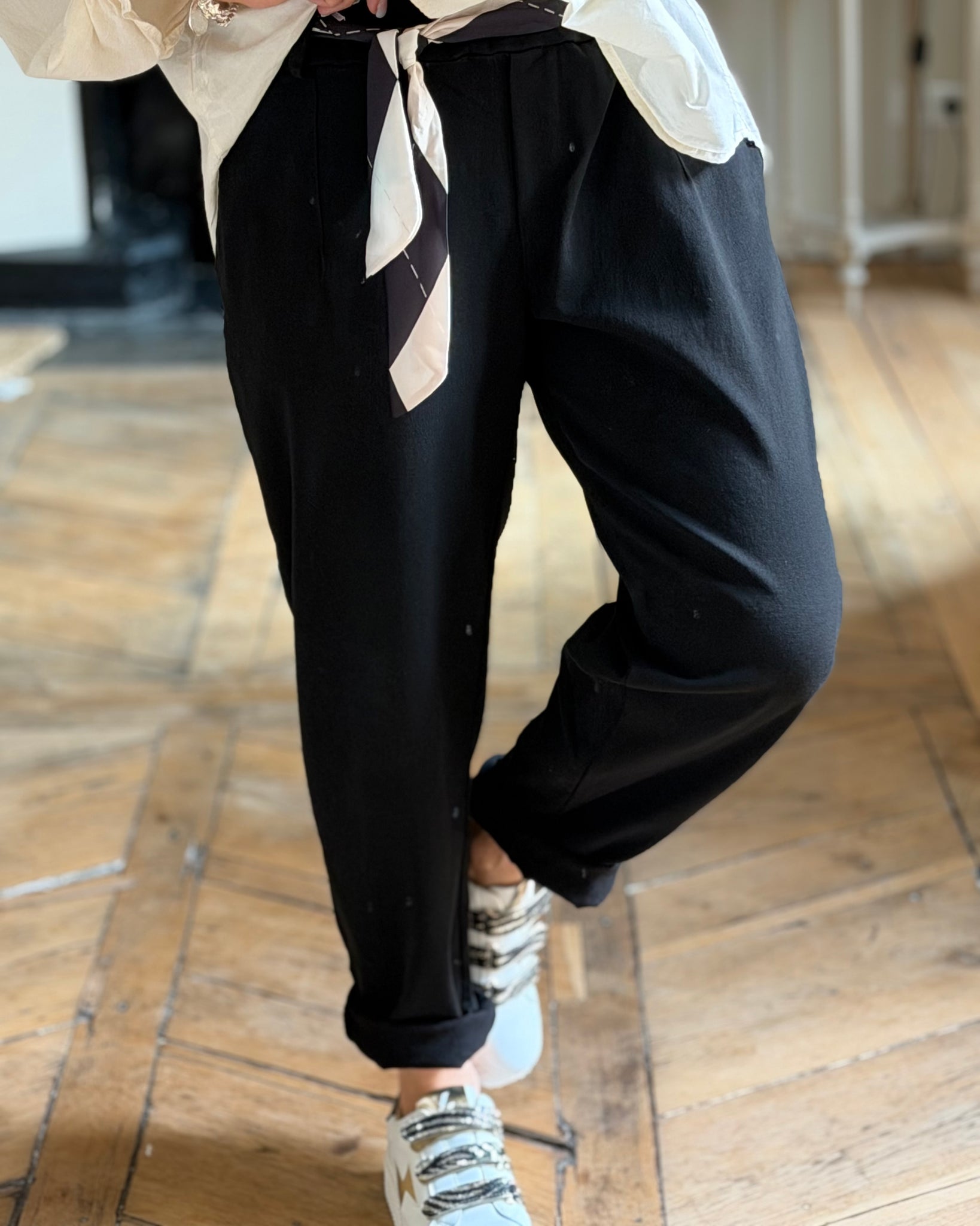 Pantalon en toile, taille élastique avec lien tissus