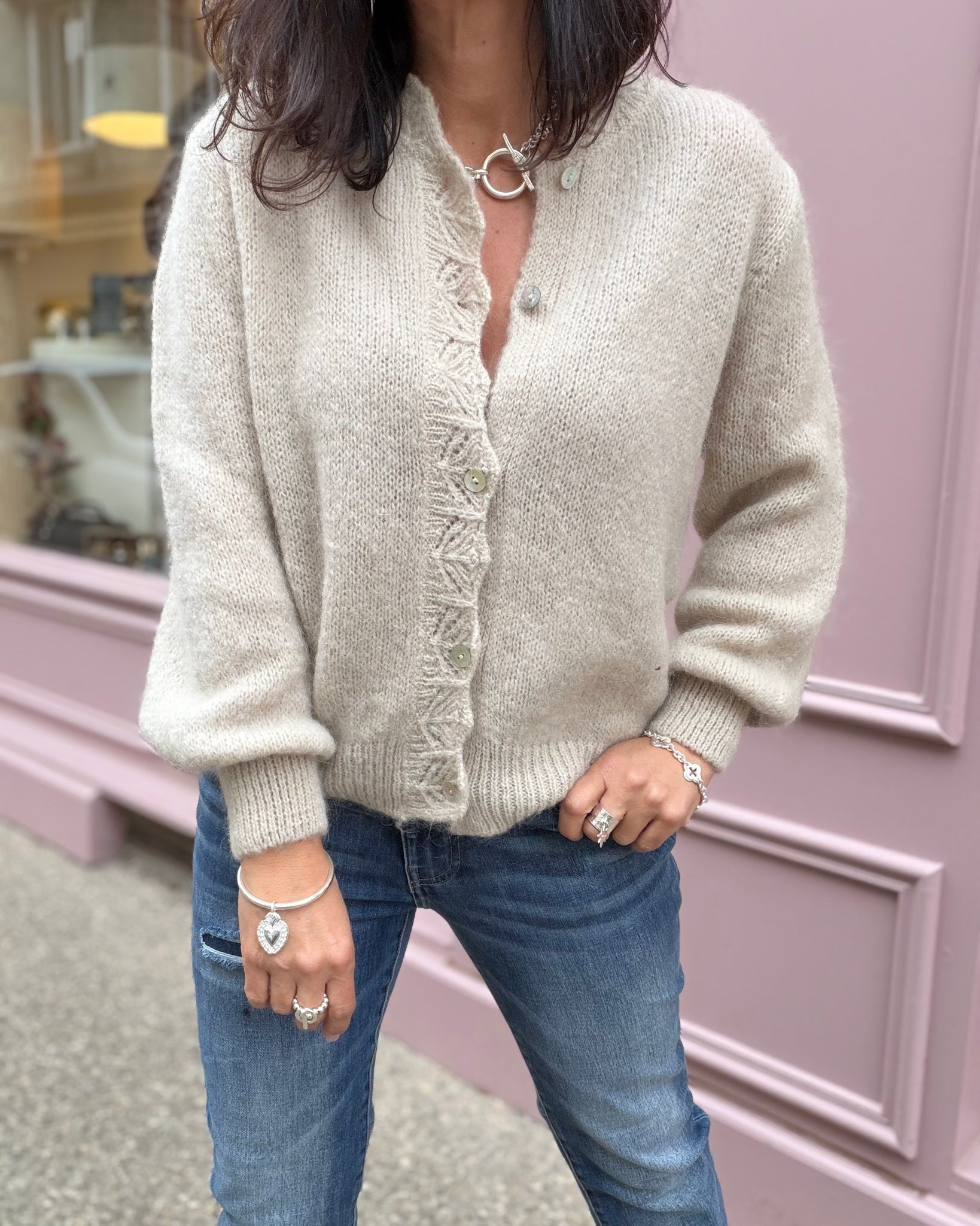 Gilet avec détails ajourés le long de la boutonnière