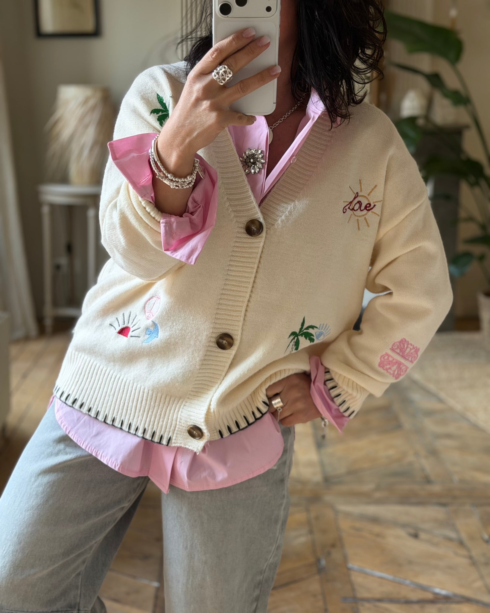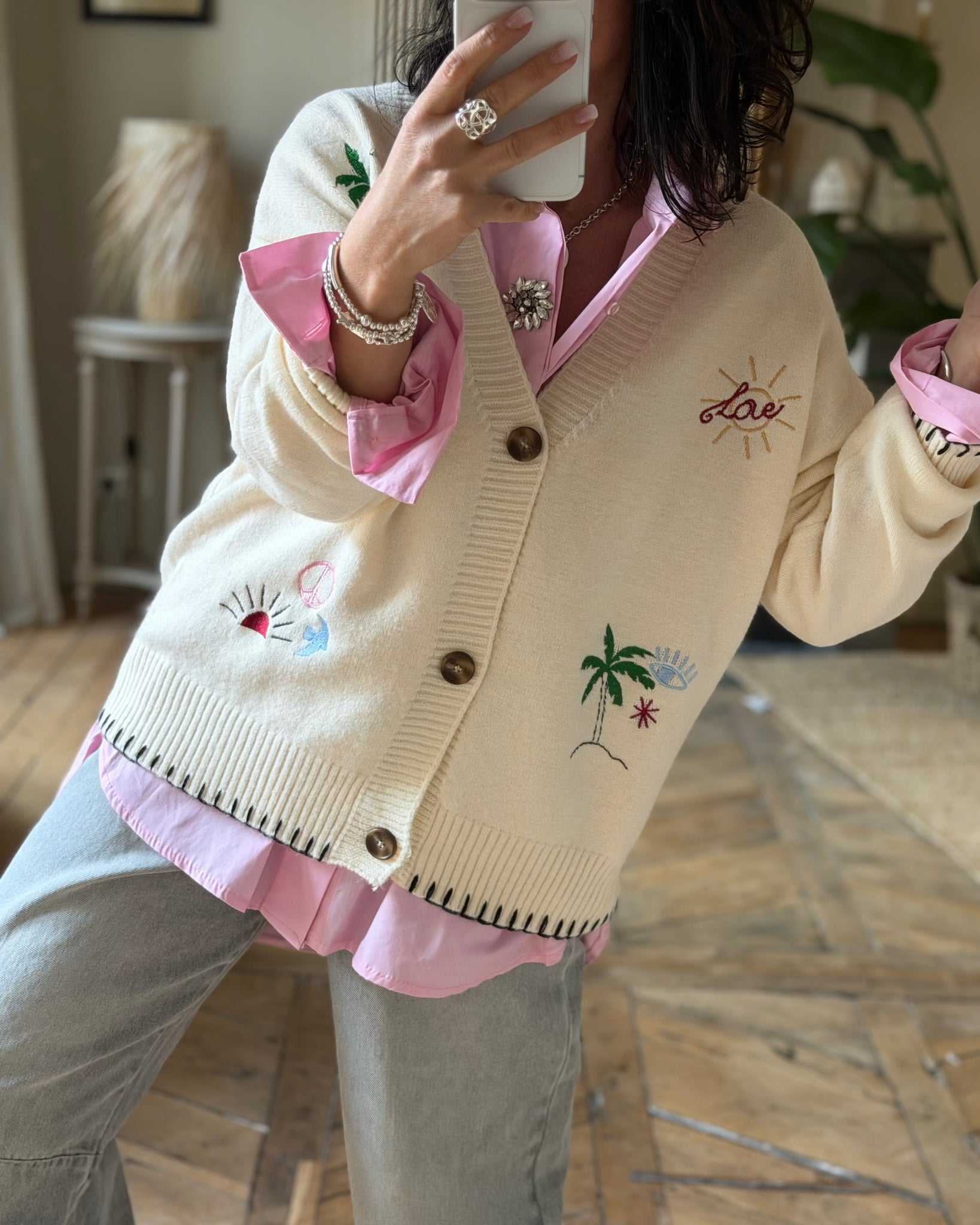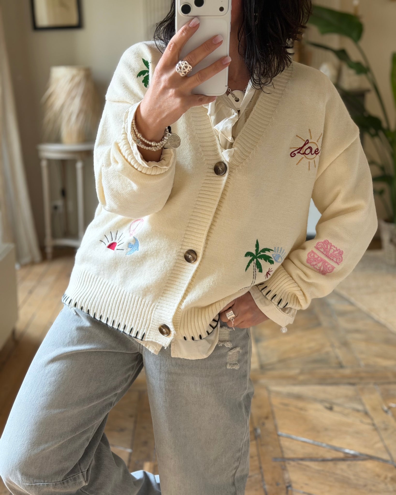 Gilet écru à broderies, tout doux 🥰