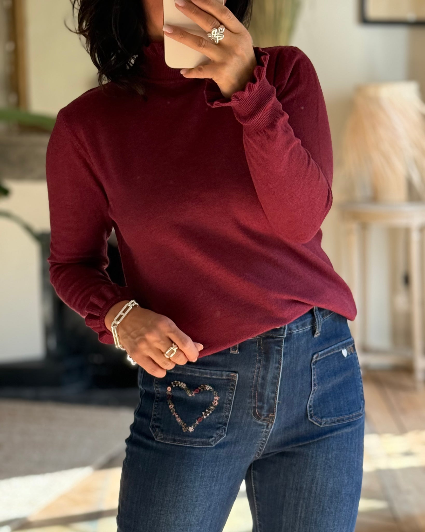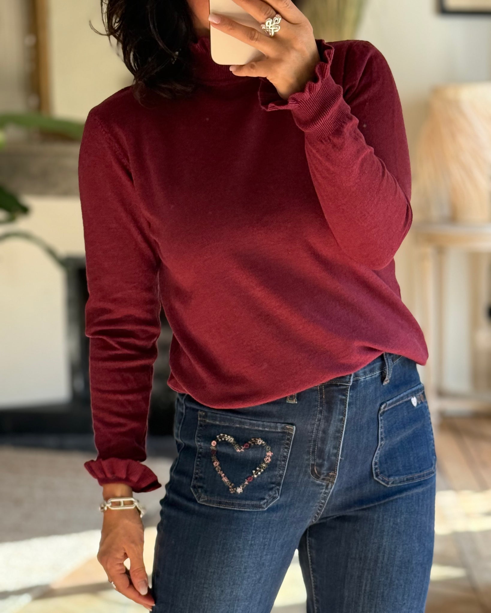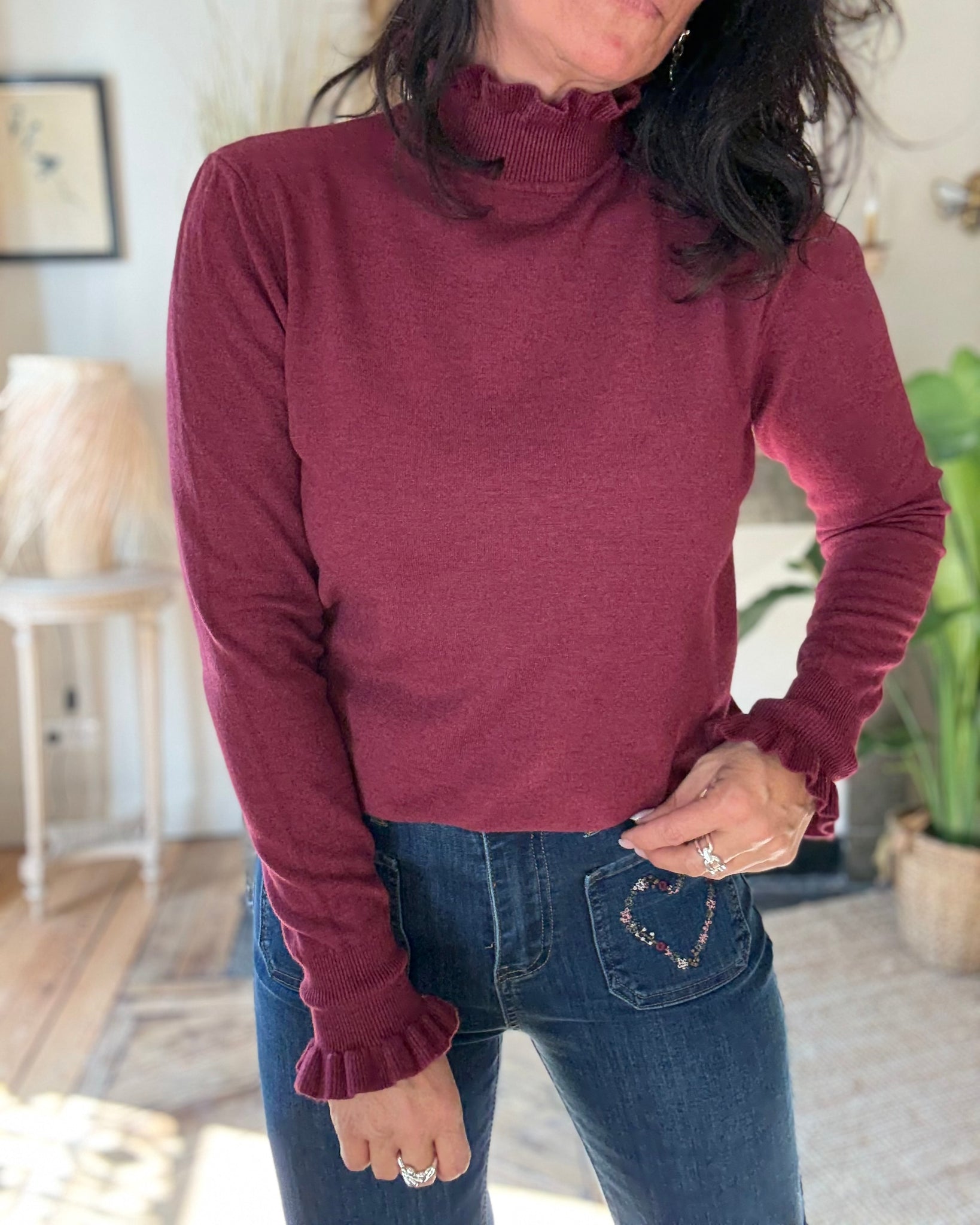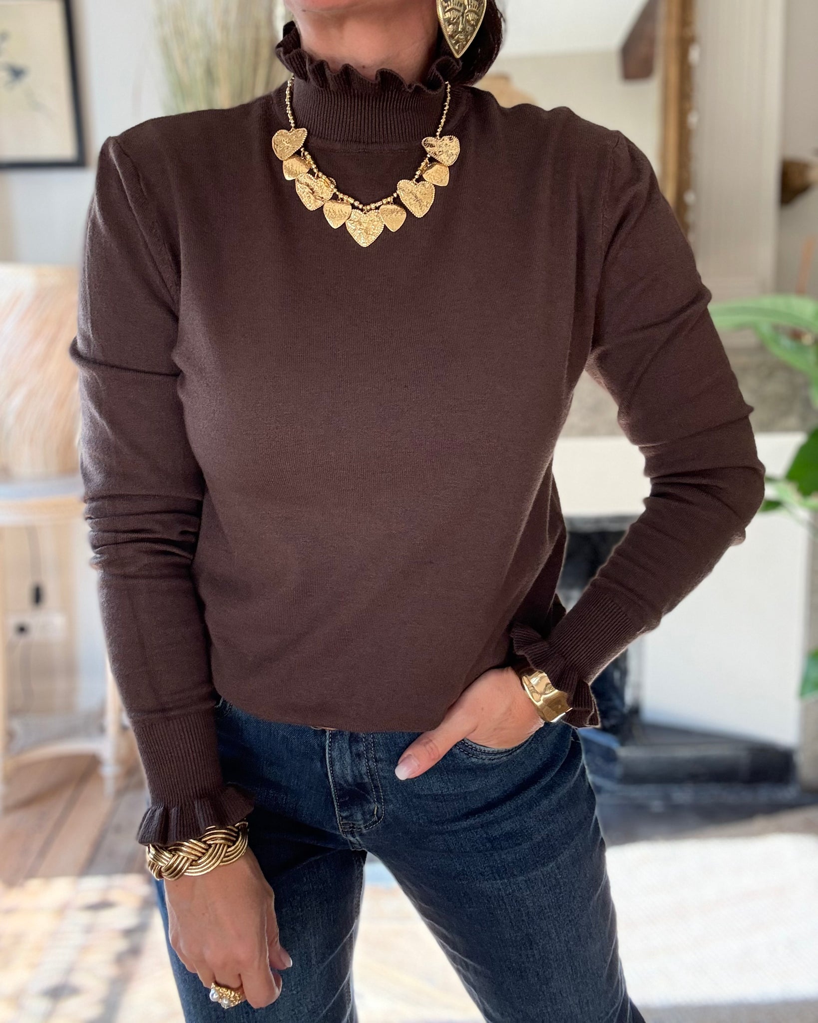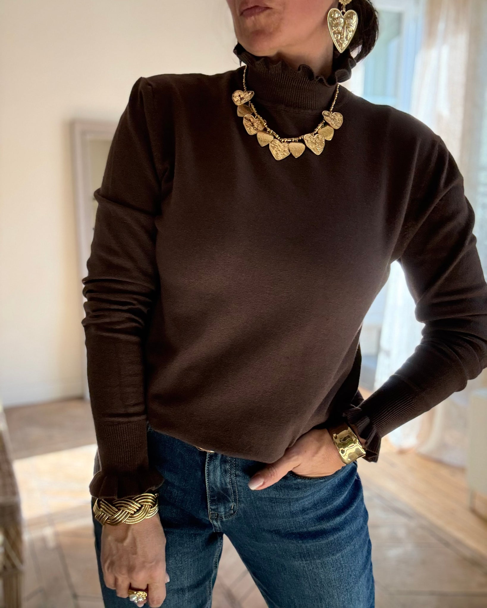 Pull fin avec col et manches froufrous