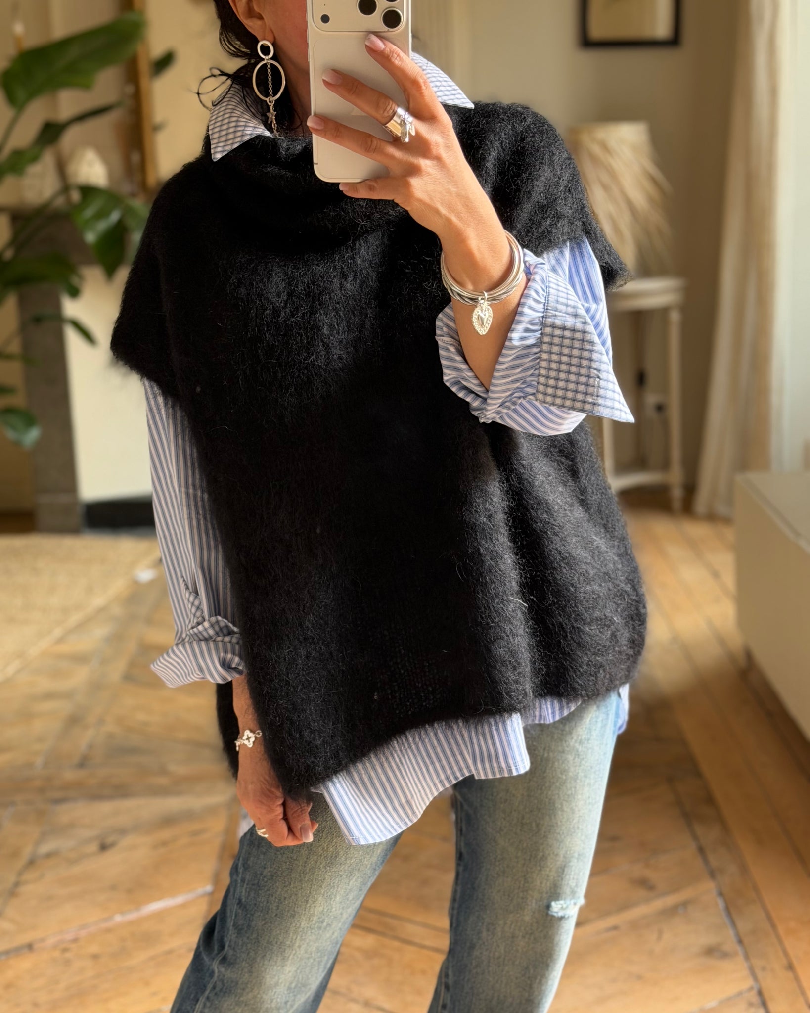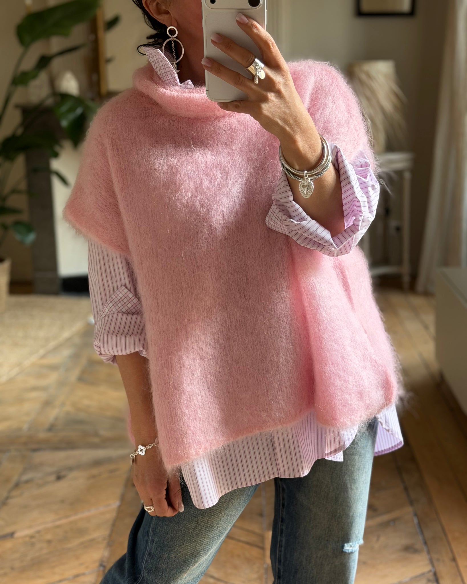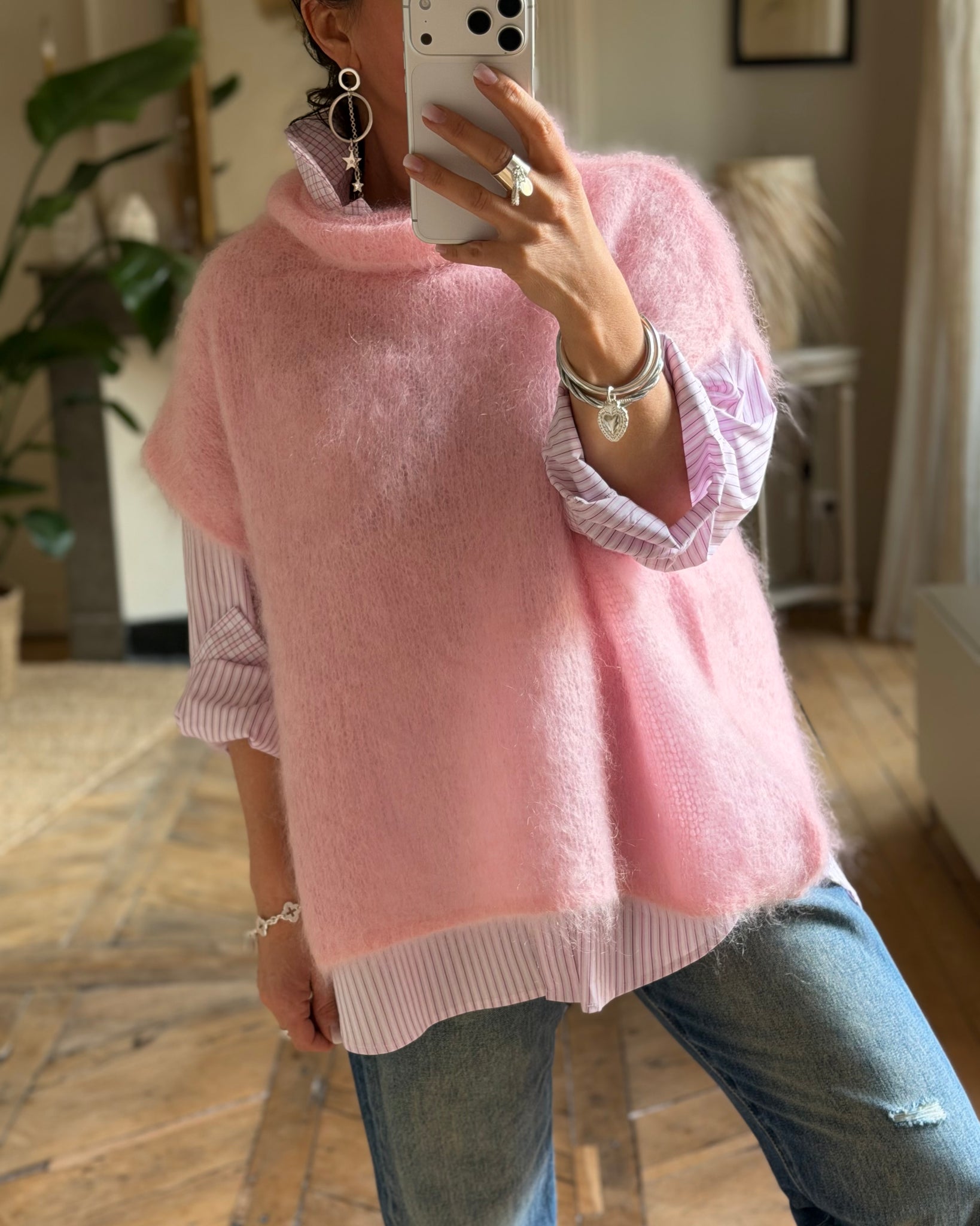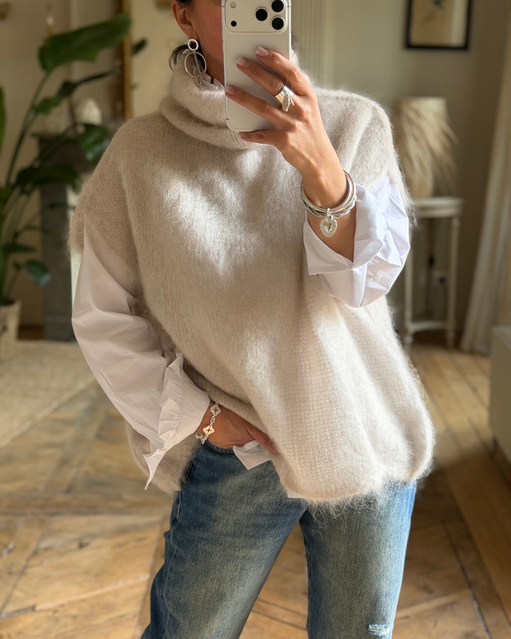 Pull sans manches, col roulé, coupe large