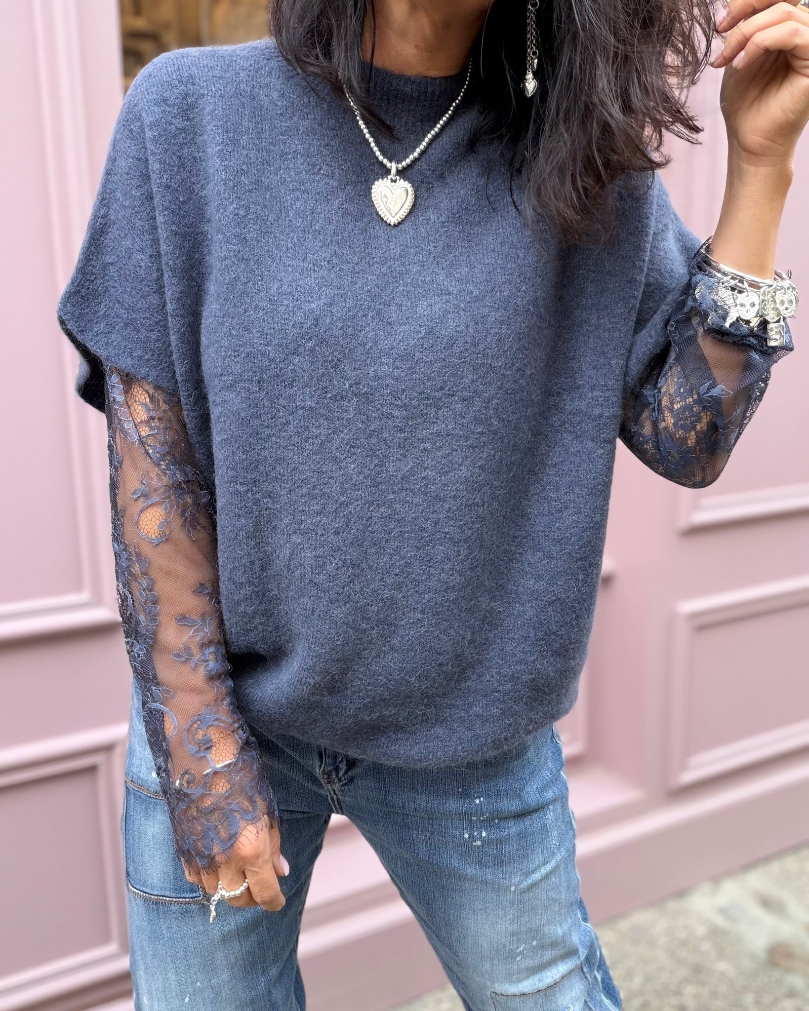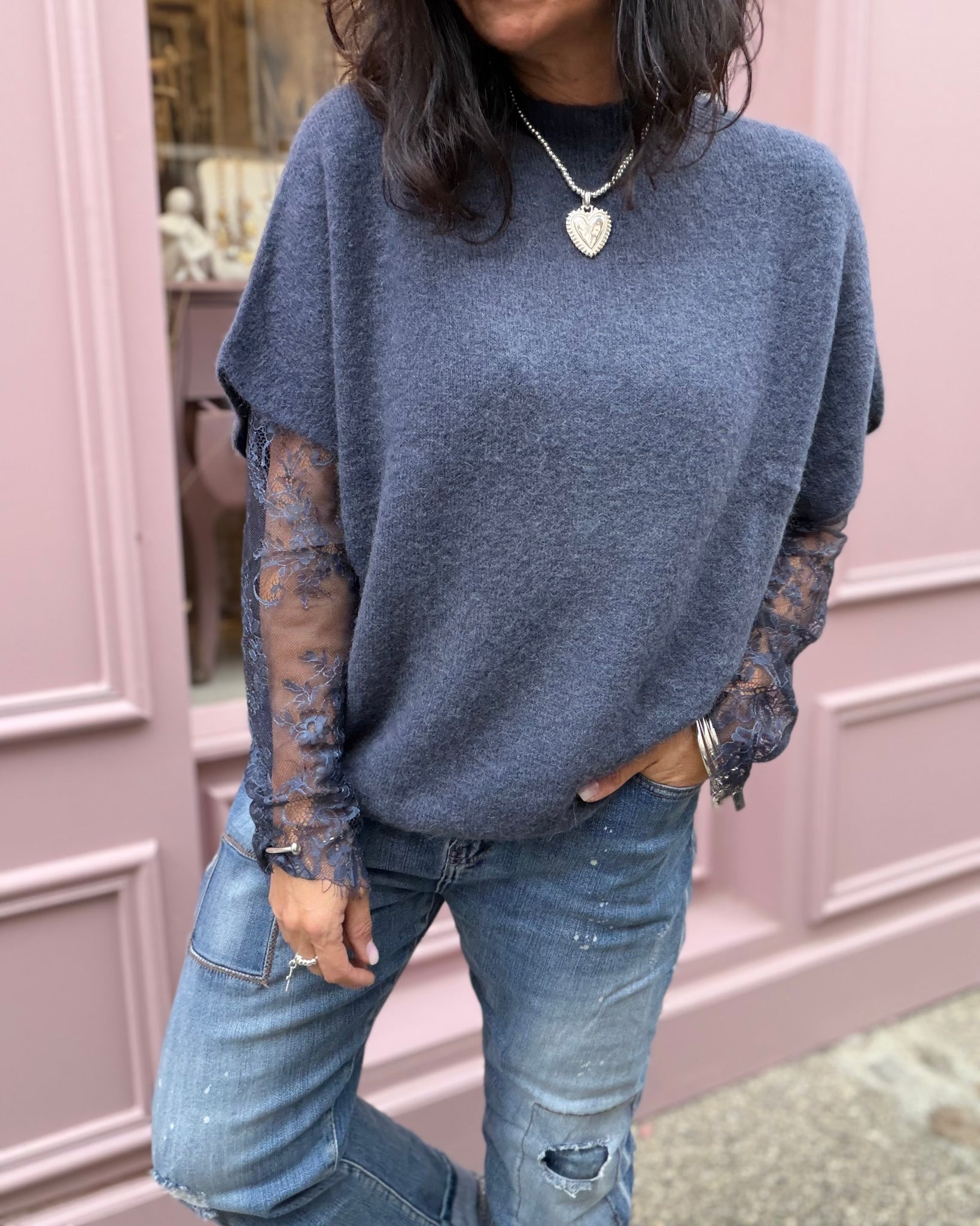 Le tee-shirt dentelle portĂ© en dessous est vendu sĂ©parĂ©mentÂ