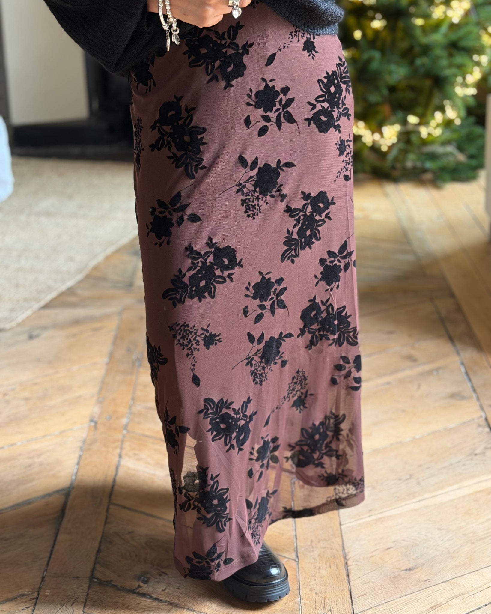 Jupe longue doublée jusqu’aux genoux, taille élastique