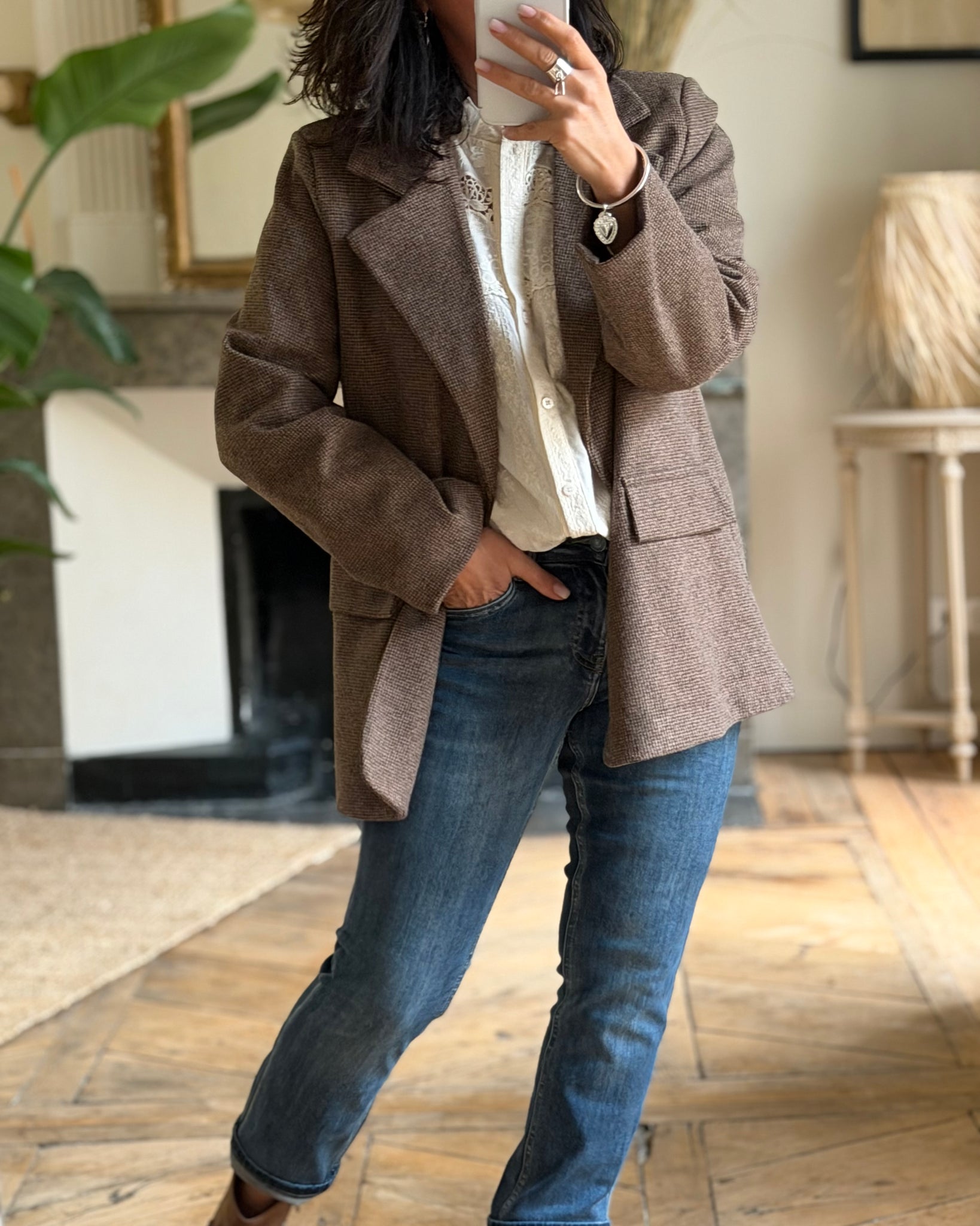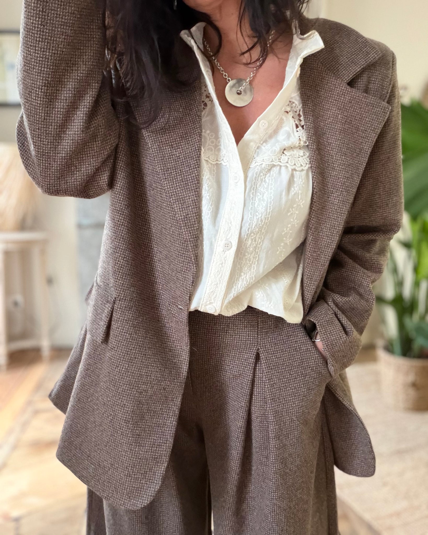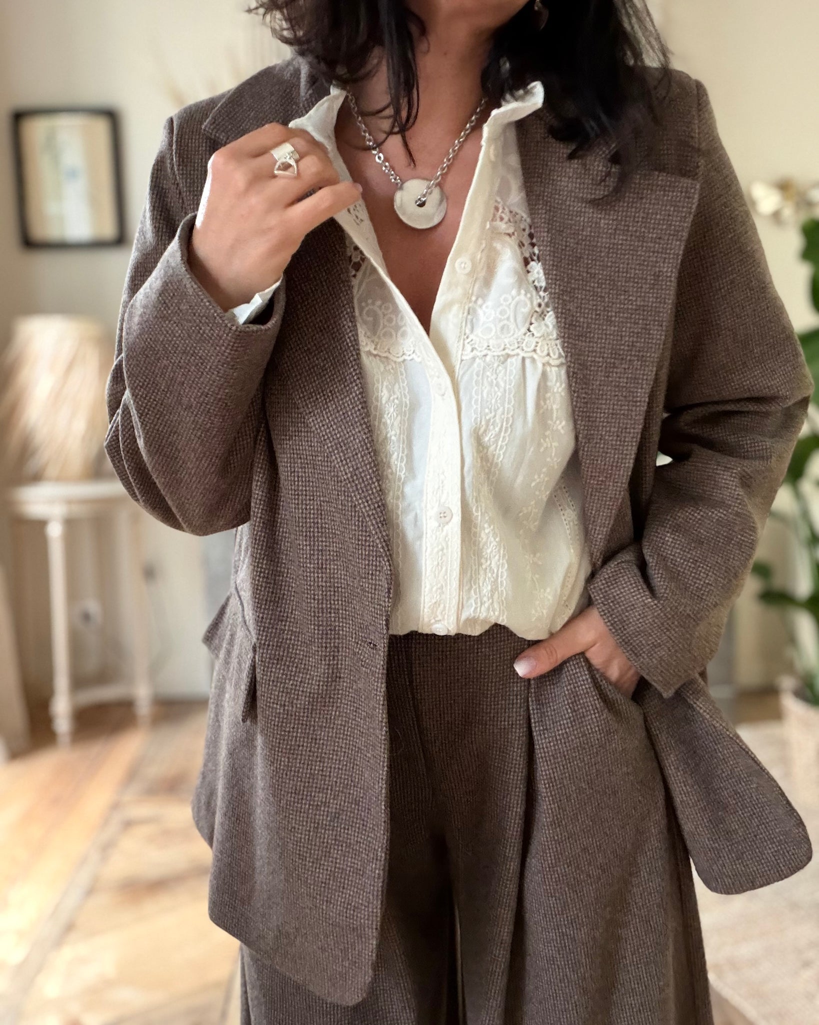Veste de costume doublée, fausses poches, fermeture par bouton,