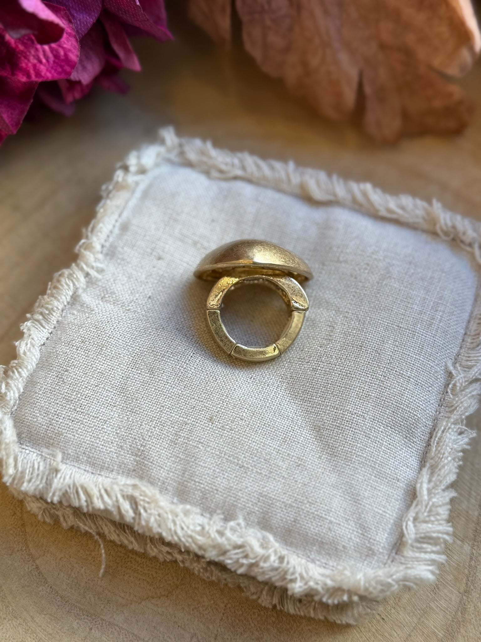 Bague dorée à enfiler, conviendra à toutes les tailles car montée sur élastique