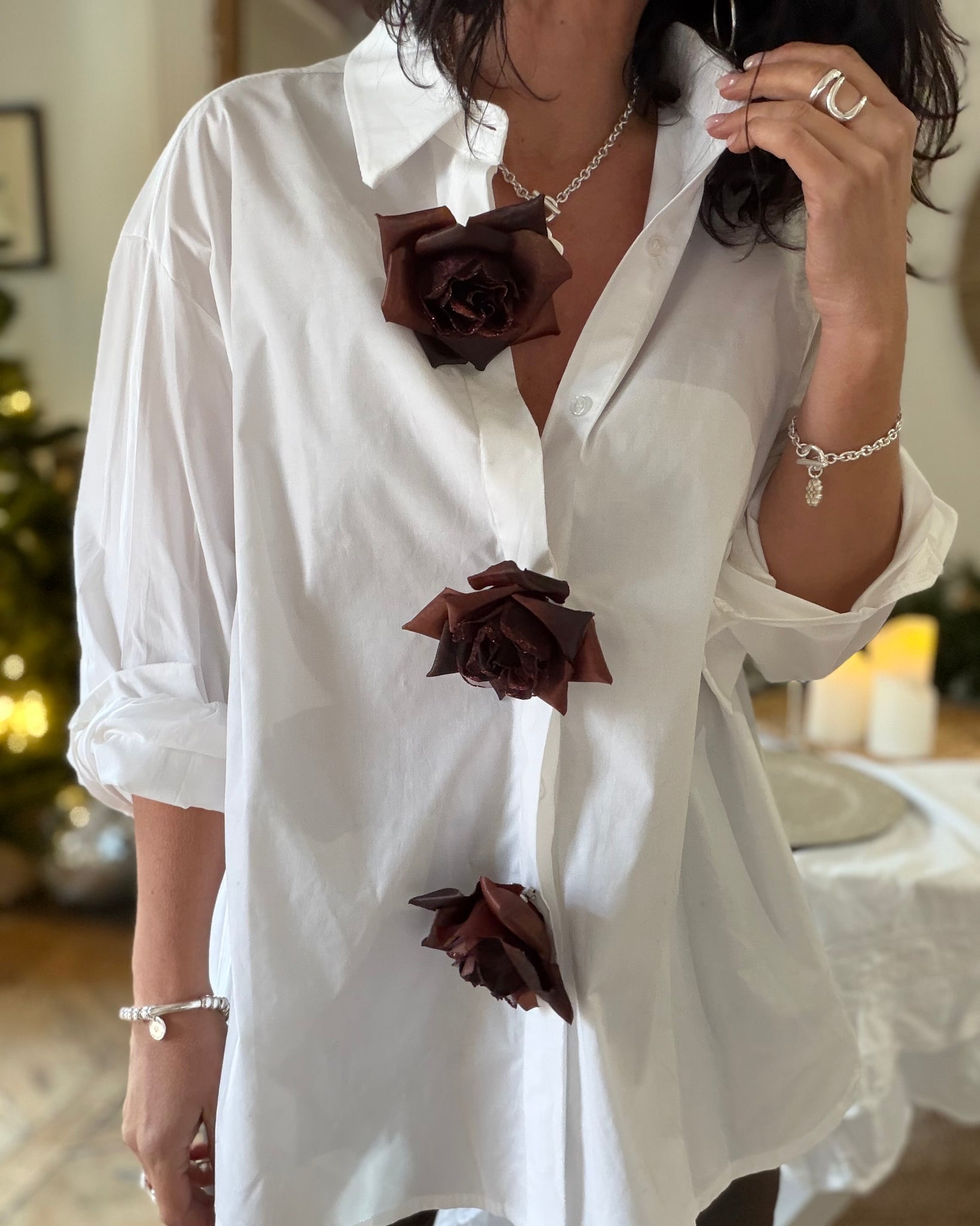 Chemise blanche, coupe ample, 3 broches fleurs amovibles