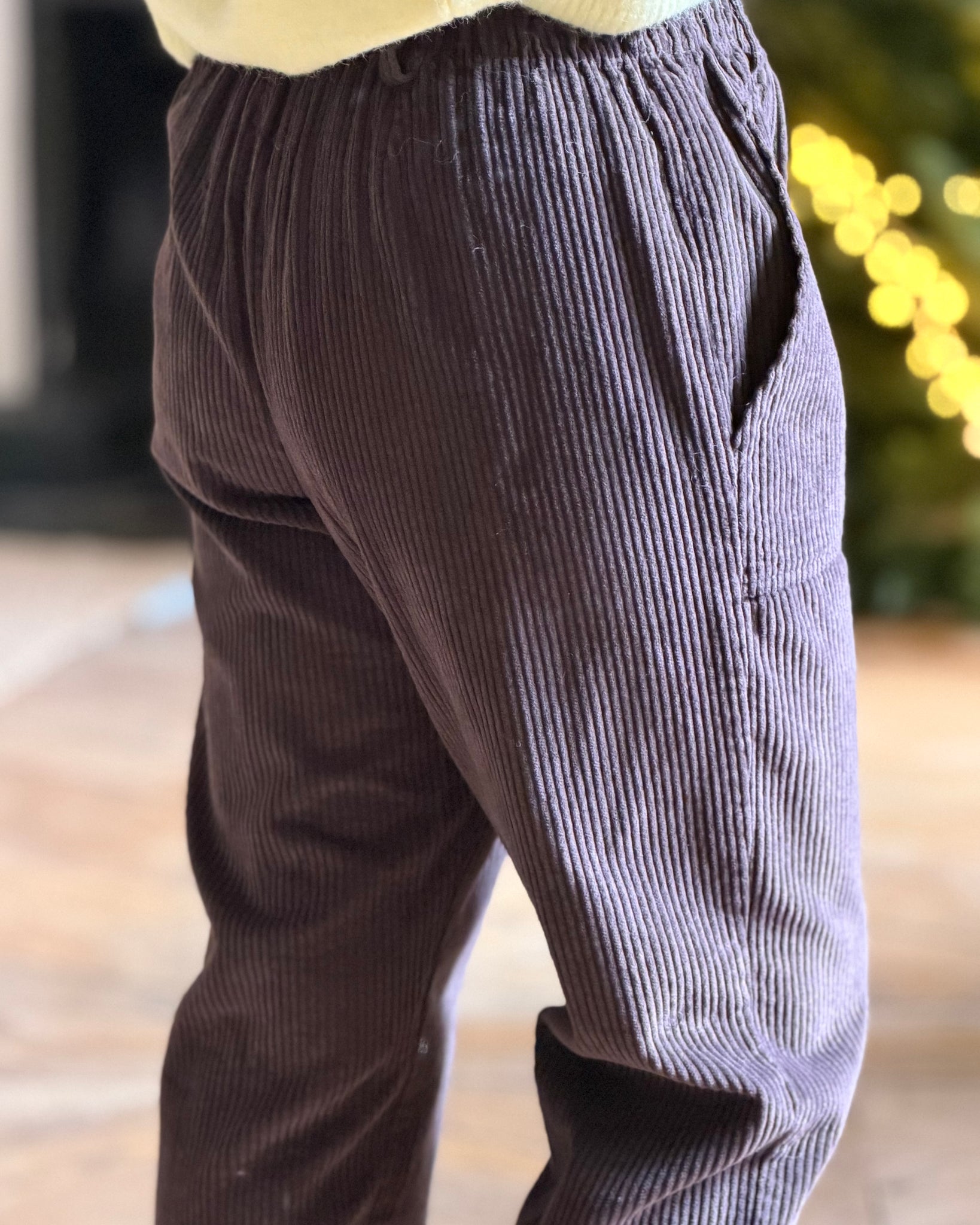 Pantalon velours, taille élastique, poches